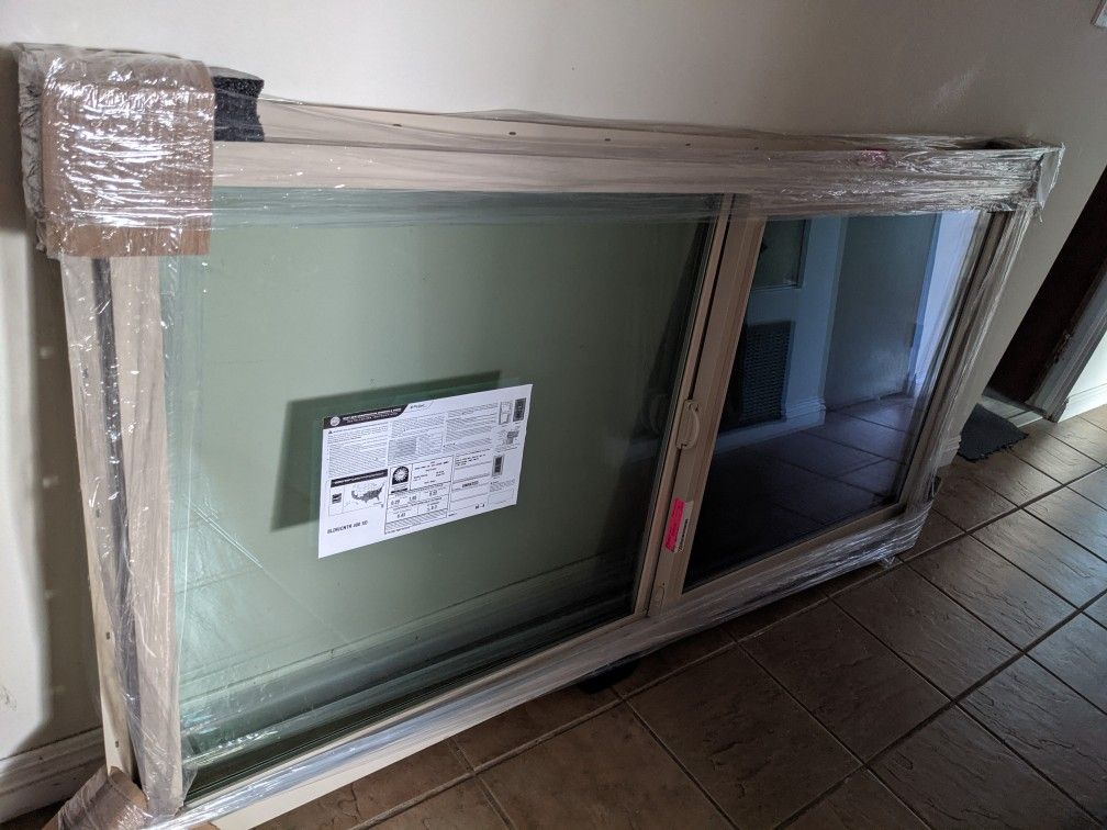 Brand new vinyl window for new construction. Size: 69 inches wide 33.375 inches high. Color/Finish: Sand