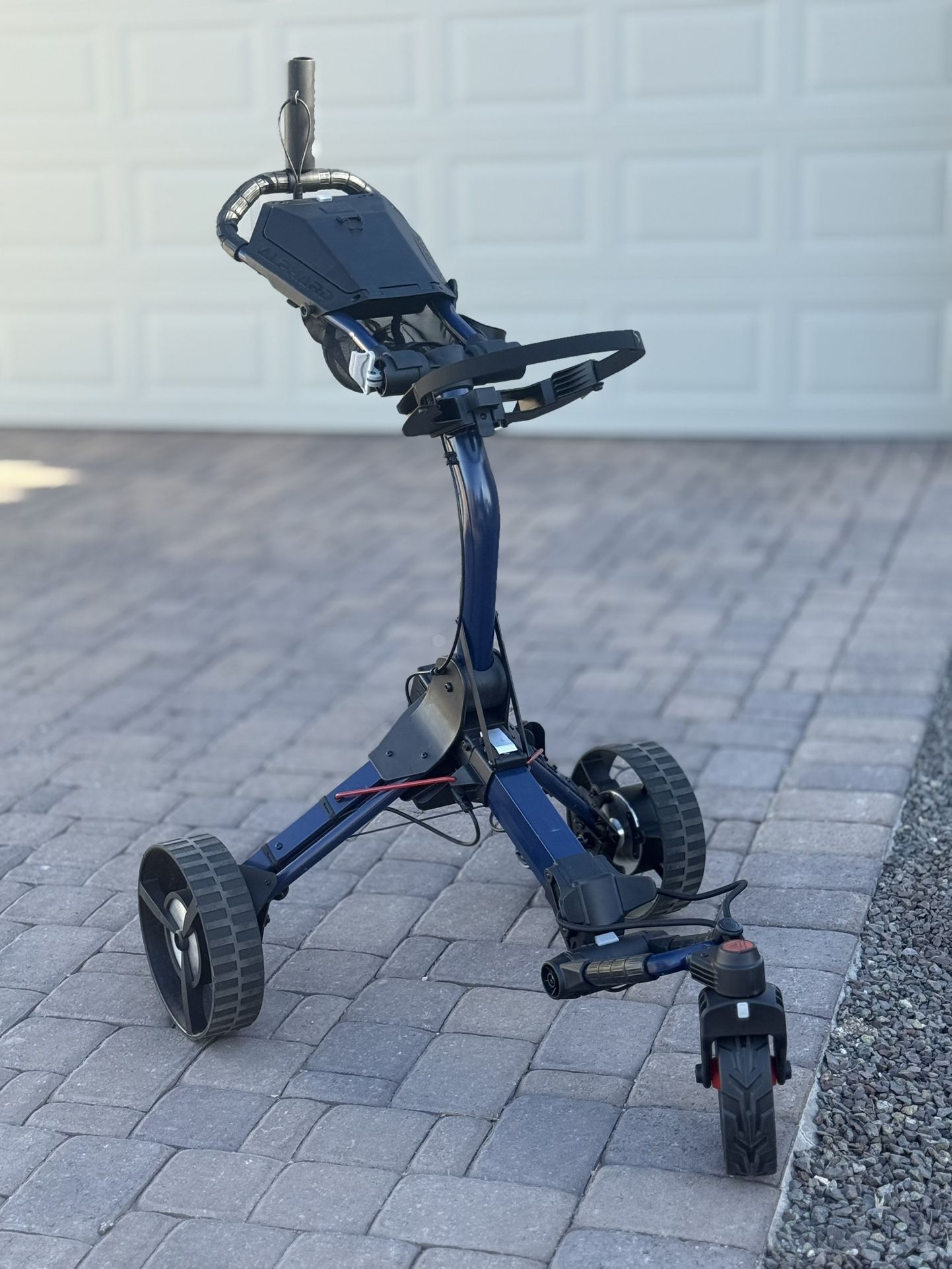 This is like new. This was only used on 3 rounds of golf. I love this cart, and when I was walking my rounds it was a game changer for how I felt towards the end of the round. Unfortunately we moved and the local course won’t let anyone walk for any reason. So I’m selling this for a song. My friend has the smaller unit that fit on his existing cart. The all in one is much better. This is A LOT quieter and has a longer battery life. Easy and fun to operate. Comes with remote, battery charger, and owners manual.