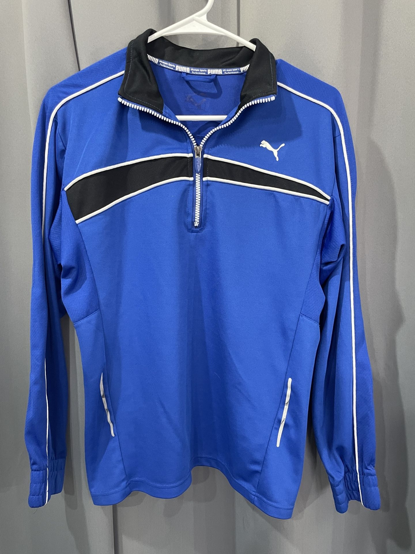 Women’s puma royal blue/black quarter zip jacket. Size small.