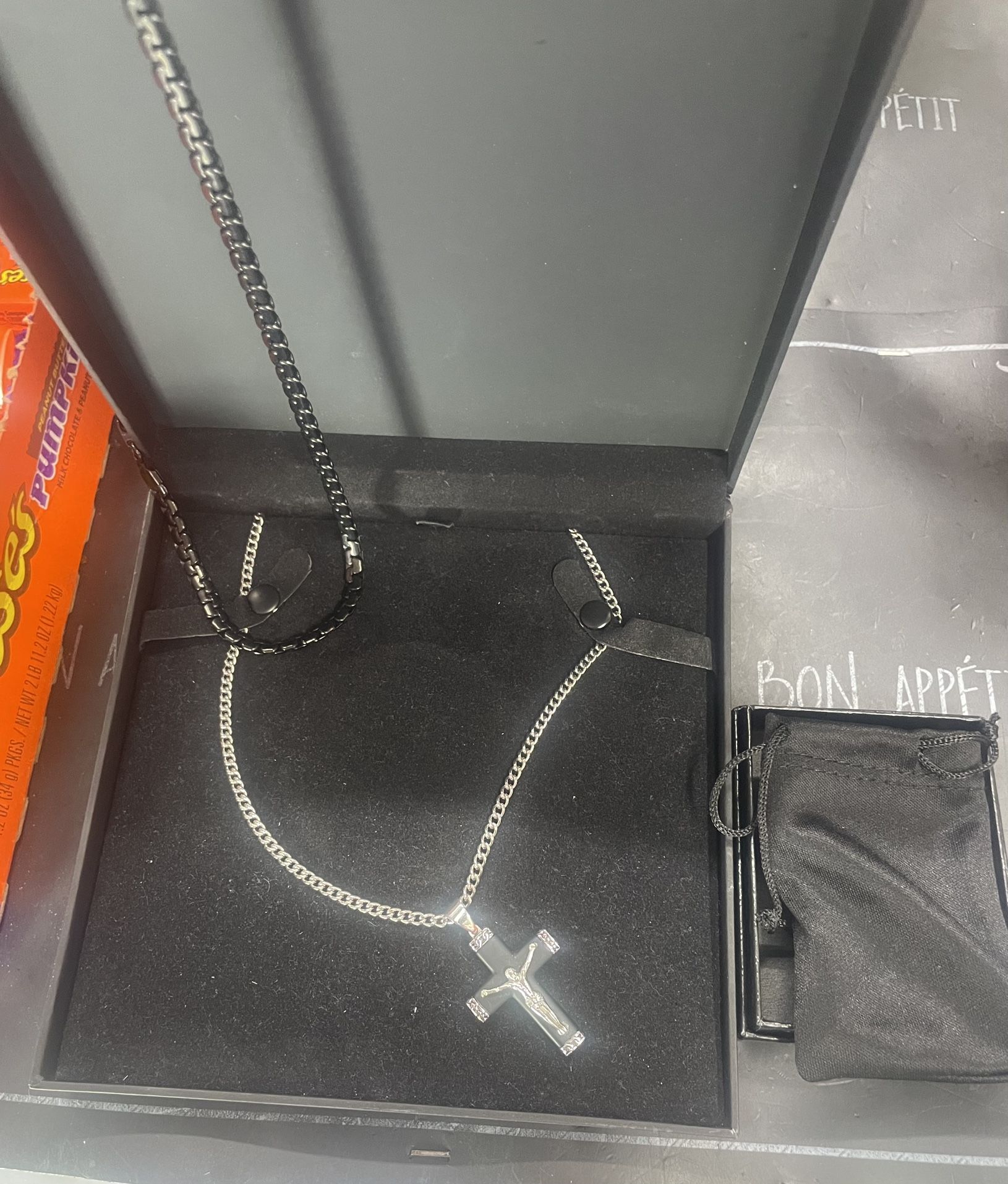 2 cadenas una de plata y otra en negro 95$ todo es nuevo con su caja