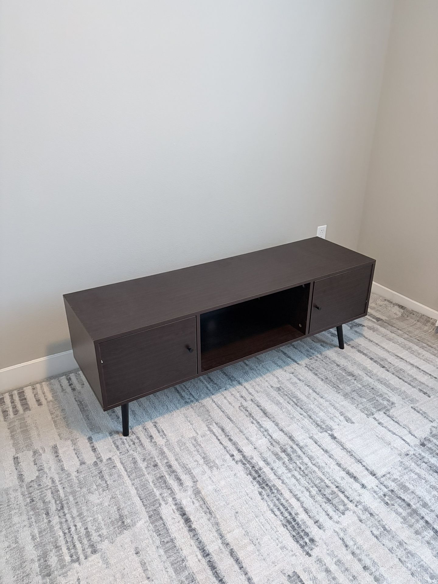 Dark brown wood TV Stand for 55” TV. No longer need the item. Buyer to pick up the item after confirmation of purchase. Priced to sell fast. $50 OBO. Thank you for looking.