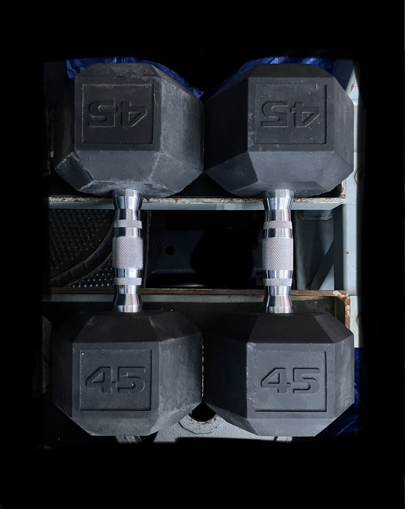 Rubber hex set of 45lb x2 = 90lbs total for $90 cash. Price is firm. Pick up anytime in Cleveland 44135. No payment apps of any kind. Thanks.