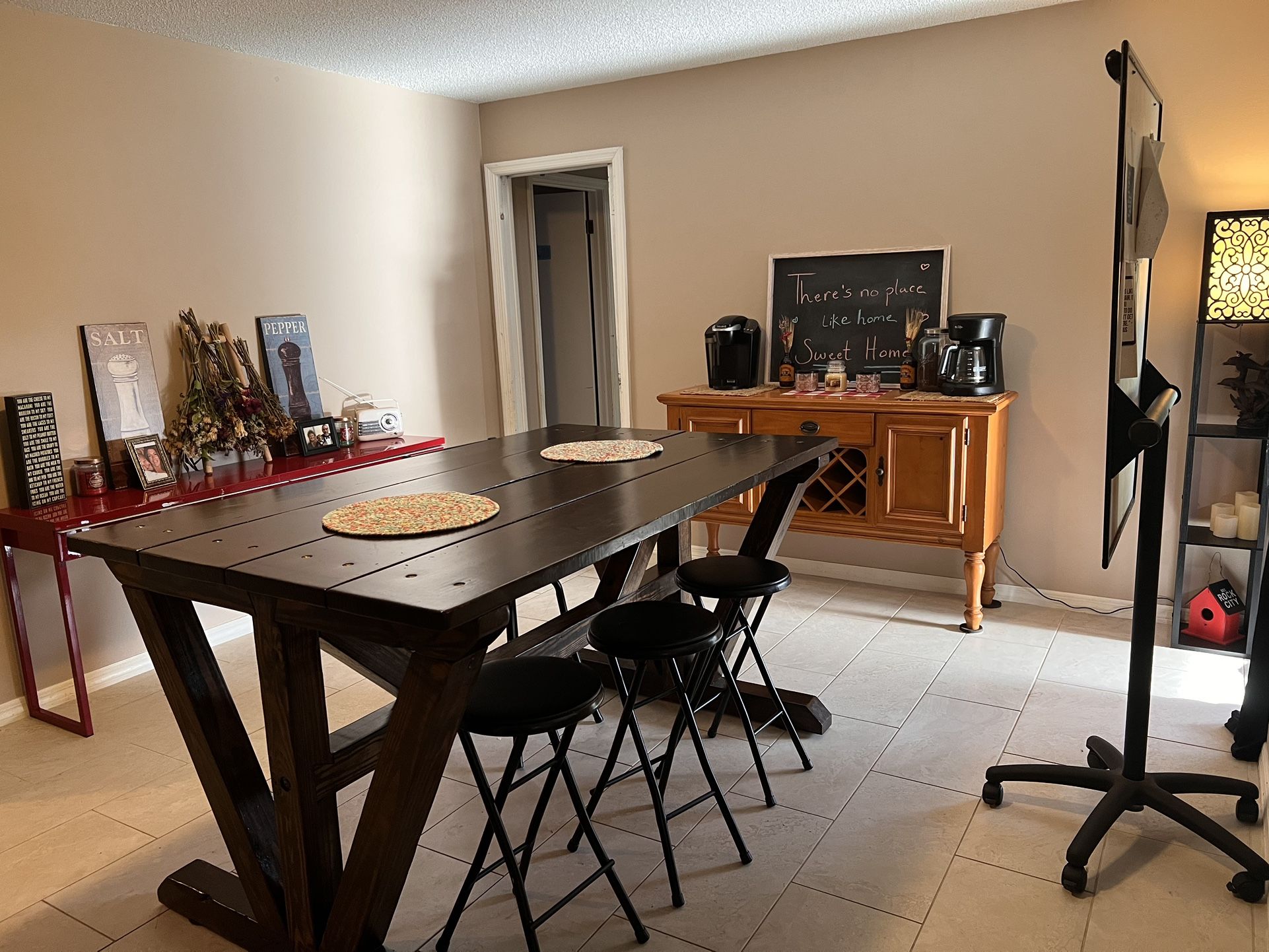 High top farmhouse dining room table (Only the top can be unbolted) Very heavy and sturdy, made of real wood.