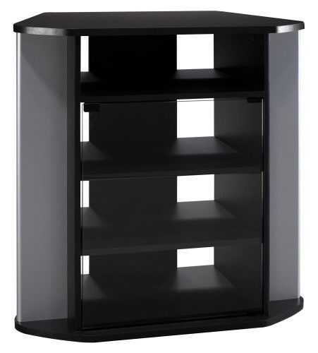 BUSH FURNITURE VISIONS CORNER TV STAND, BLACK/SILVER