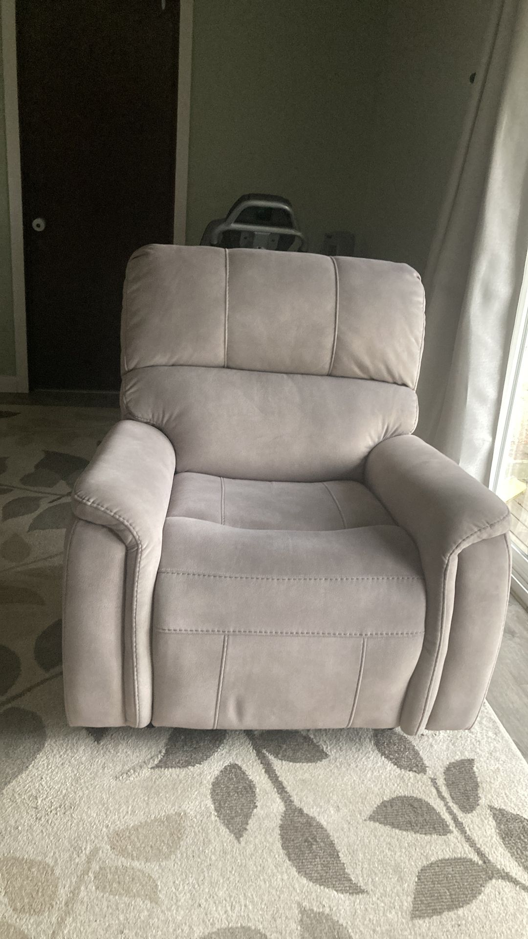 New Hayden rocker recliner. Recently purchased. Doesn’t fit well in the space. Very comfortable. Firm on price
