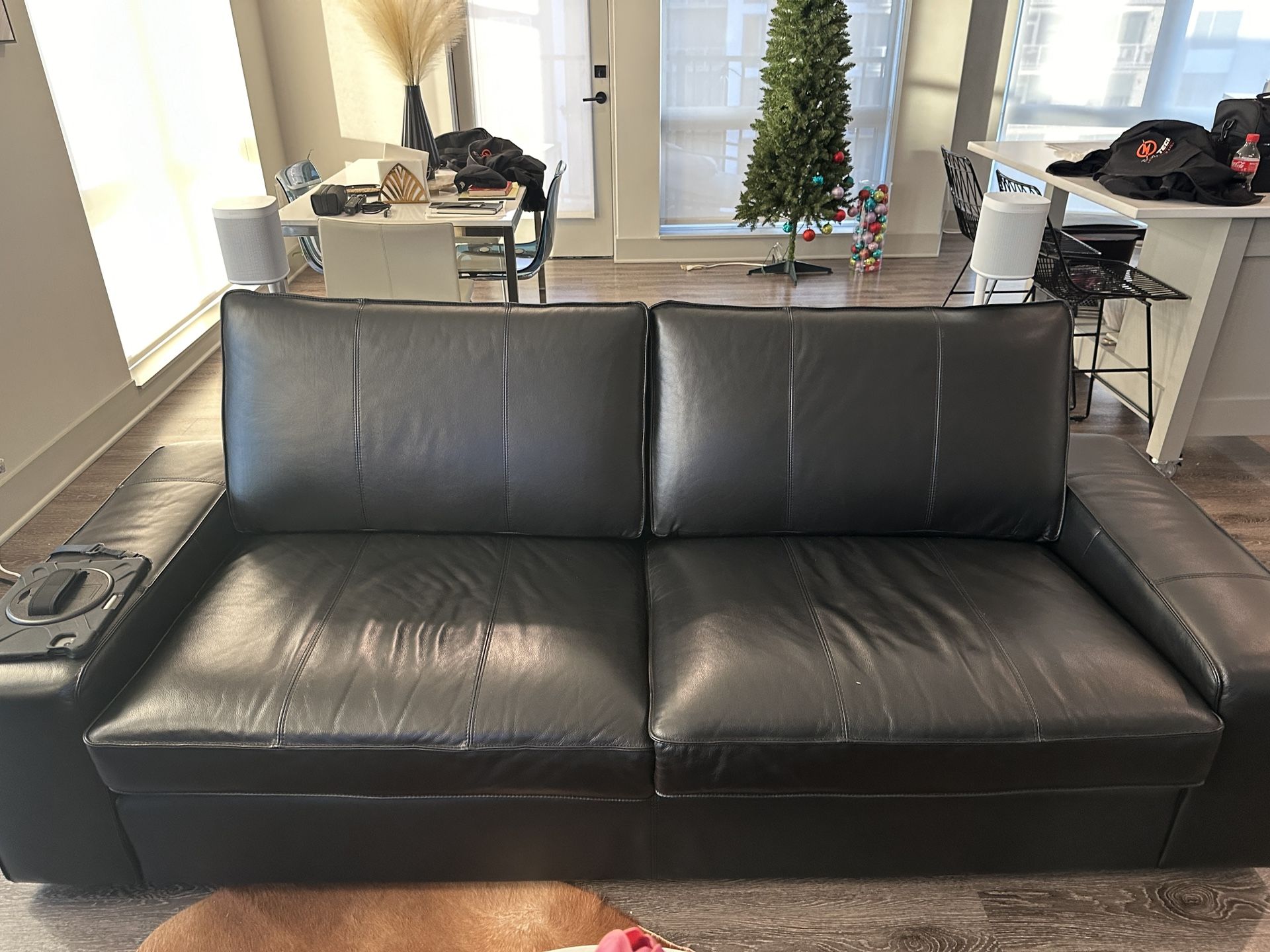 Selling my black leather couch. Had it for only 4 months!!! Seats 3 more people Pick up only!!!