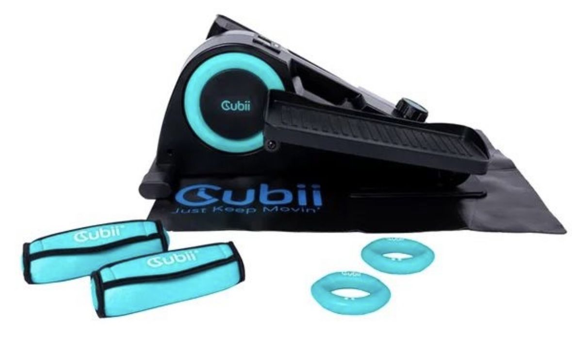 Cubii JR1 Elliptical Bundle with Mat, Ergonomic Dumbbells, and Squishi Grip Set