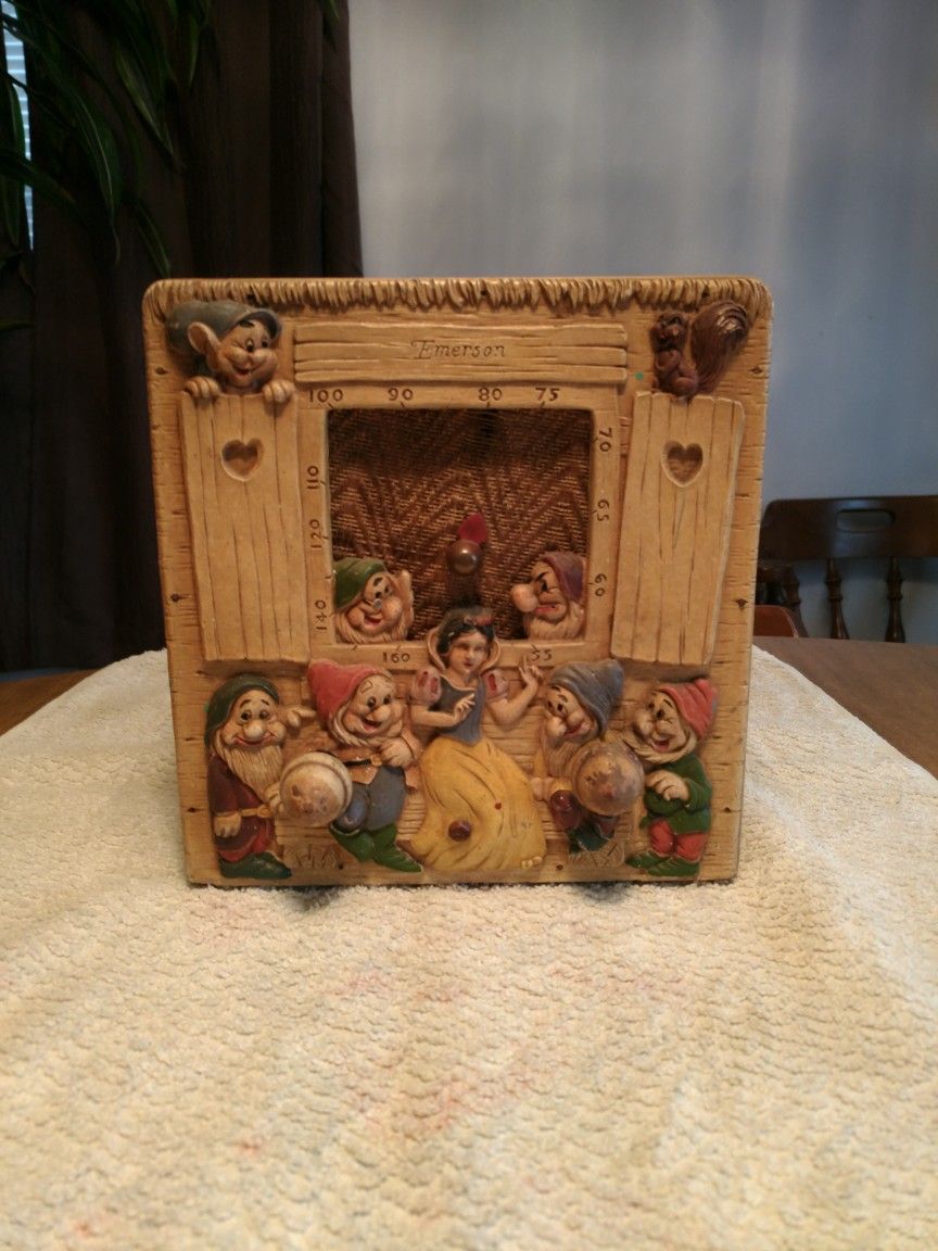 This is an original 1930's vintage Snow White radio,by Emerson ,model Q 236,over all very good condition,it does work ,I get one station where I am,some chipping on acorn dials,an some wear on case.this radio was my mothers ,which my grandfather bought new,its been in my family for years.this radio is scarce,an very hard to find.I'm open to offers.