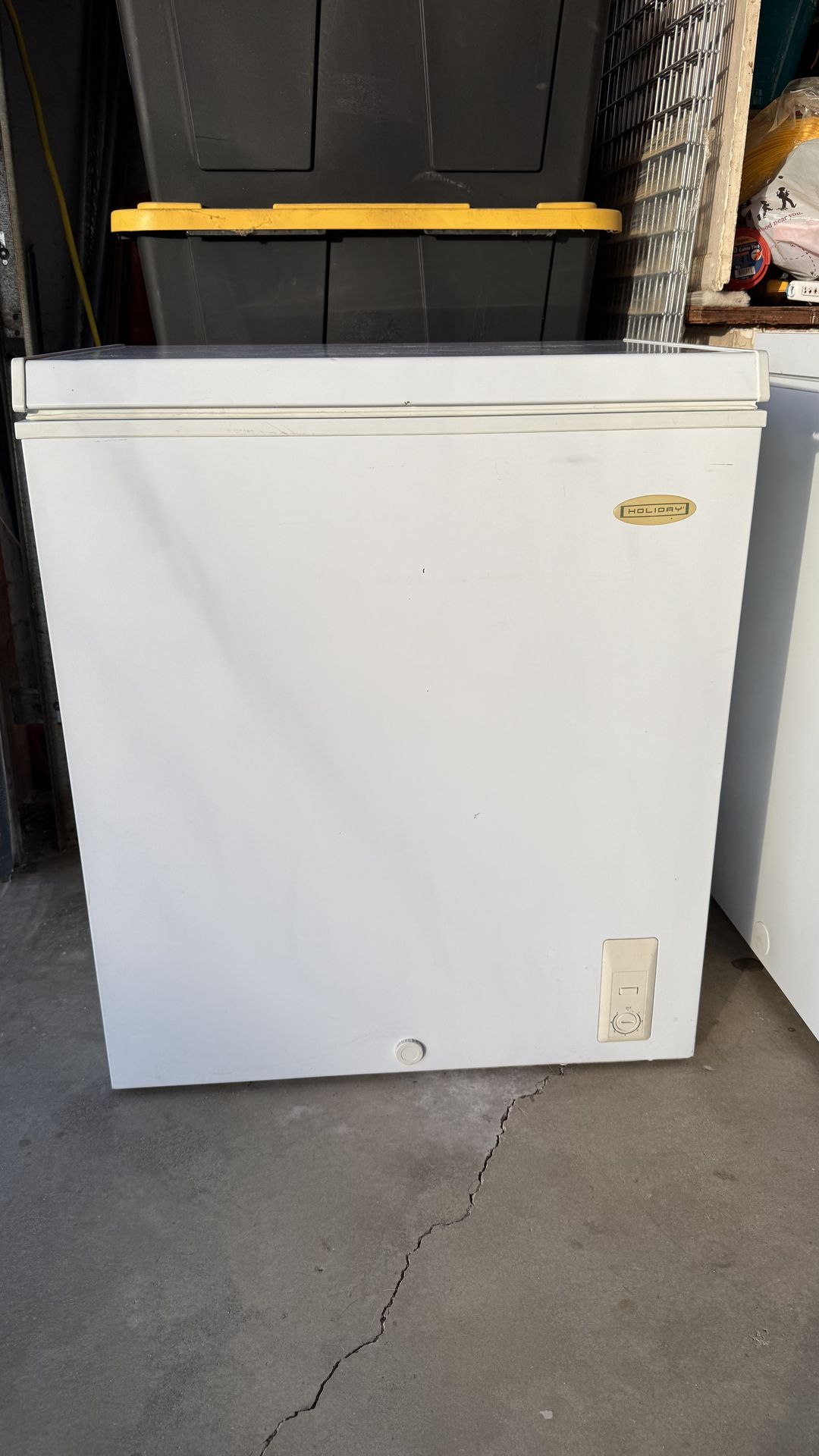 2 chest freezers one medium; one large; steel chafer