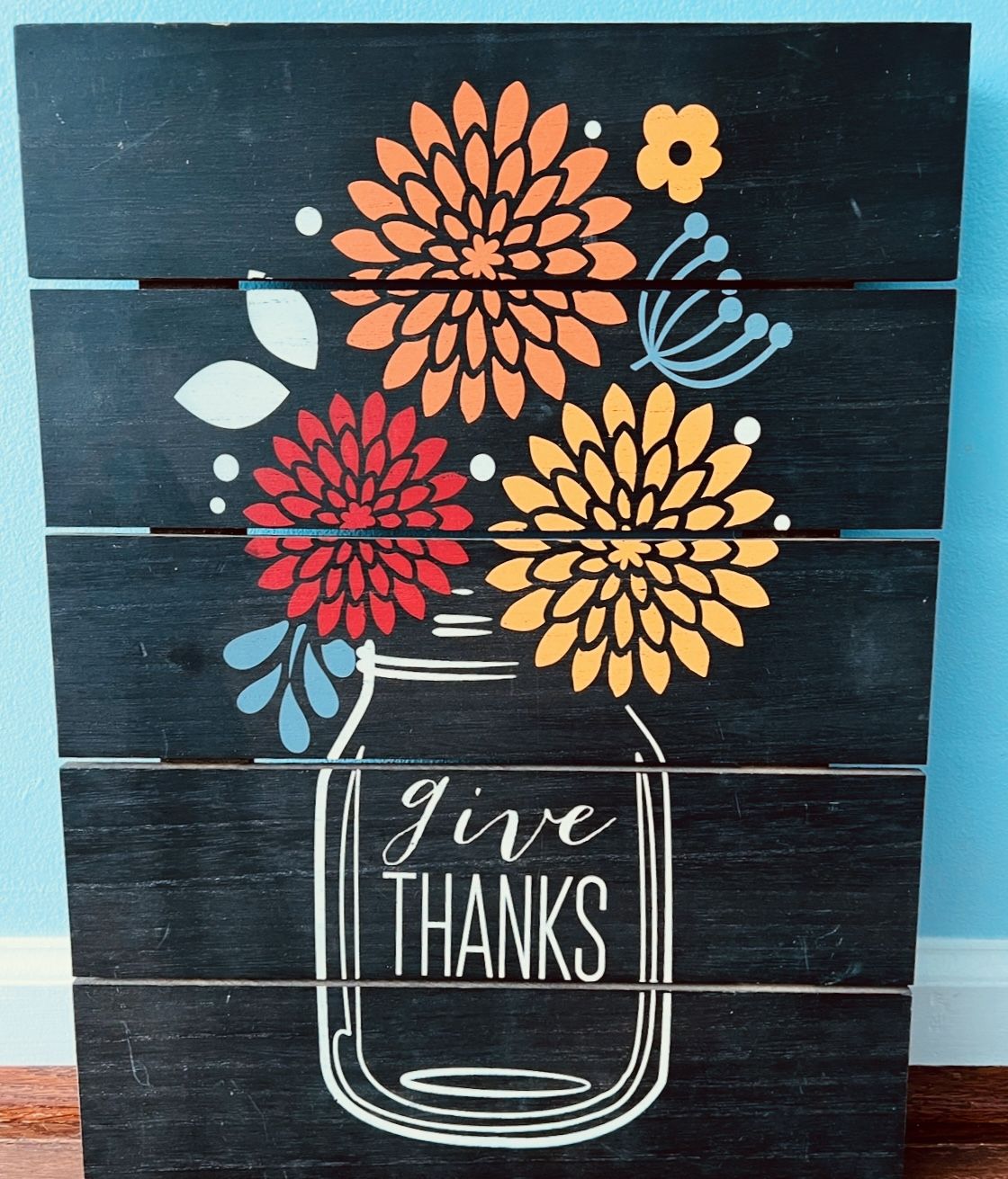 Signage for wall, mantle, etc. Fall / Autumn / Thanksgiving decorations Read “Give Thanks” with flowers Hobby Lobby, Pier One, World Market, Pottery Barn, Signage, Halloween, Season, Holiday