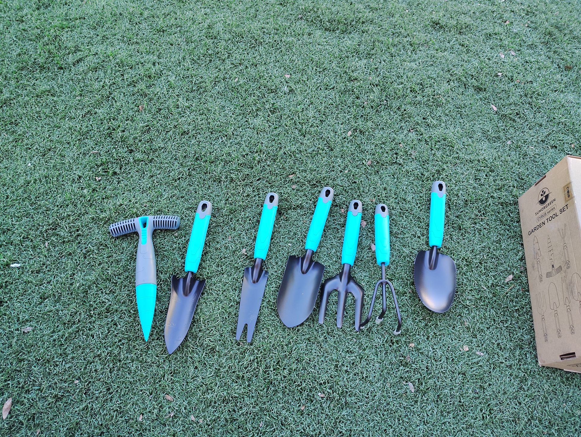 Plant Care l Gardening Tools Set - 7 Piece Stainless Steel Heavy Duty Gardening Kit with Hand Trowel, Weeder, Cultivator, Weed fork, Transplanter,Scoop, PP Release Seed Weeder Brand New in box 🎁 Se habla español