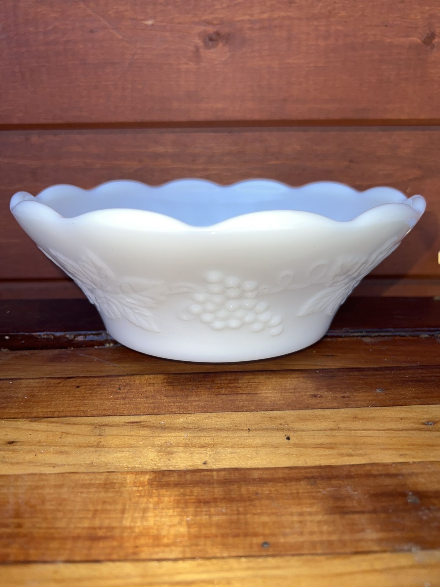 Unbranded Milk Glass Serving Bowl Grape Vine Design