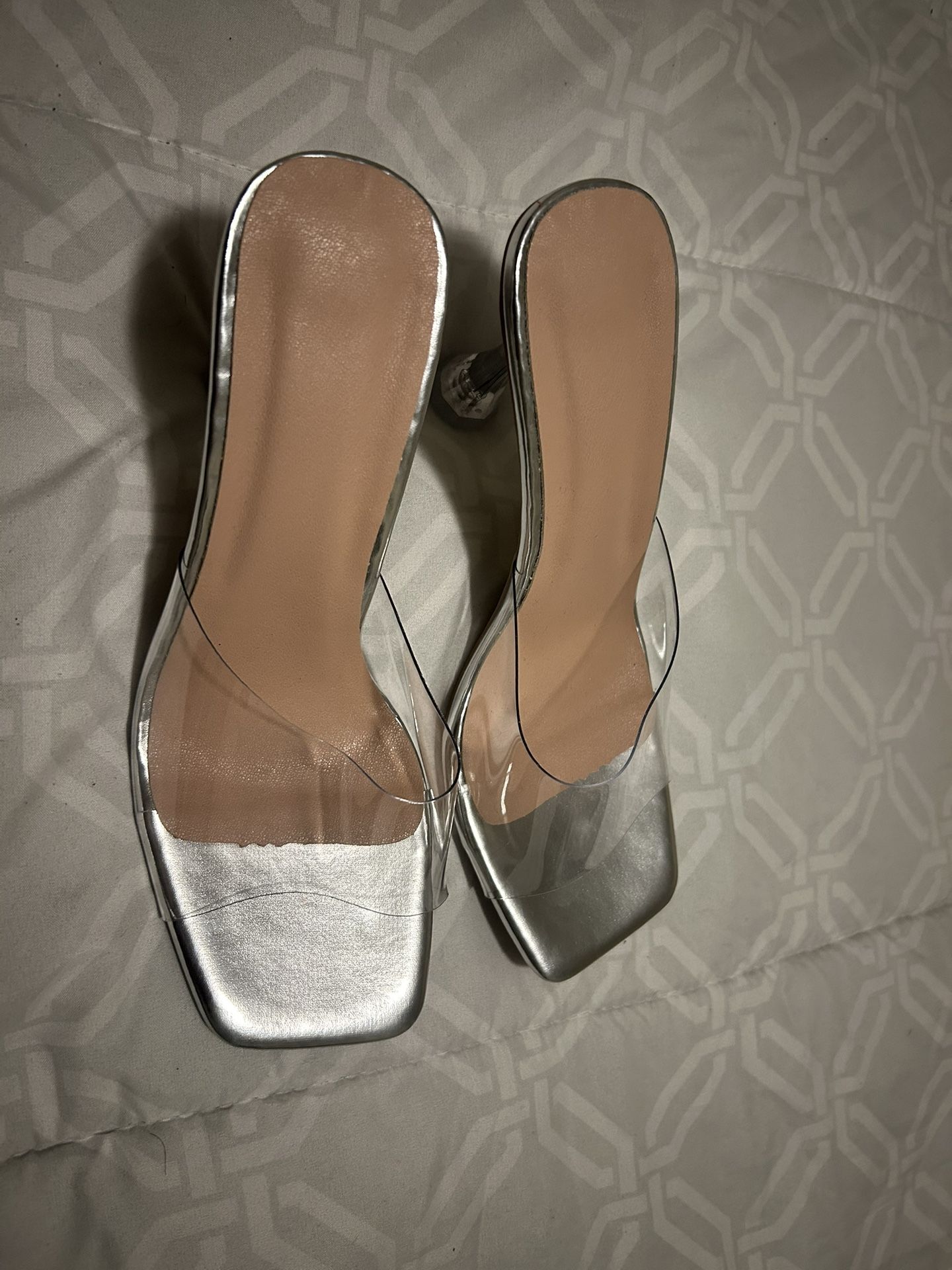 Comfortable Silver crystal heels with transparent strap Size 8 Brand new