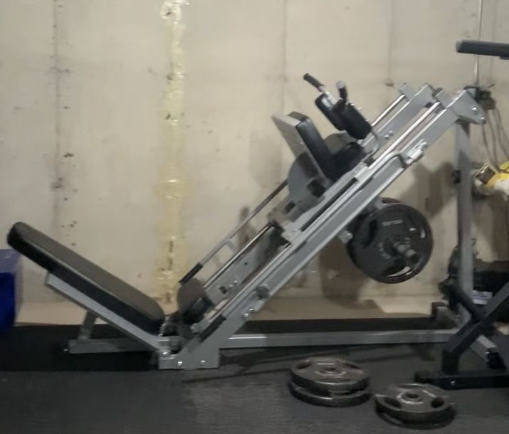 Olympic plate loaded (plates not included) Machine is perfectly functional, no issues. Assembly required.