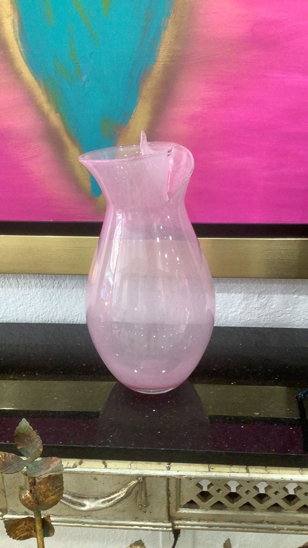 Gorgeous Pink Murano Modern Glass vase measures 14” tall. So very elegant!