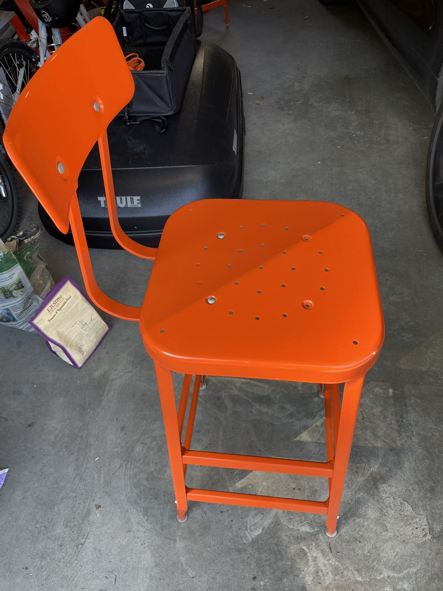 4 orange metal stools for sale, 42”H, seat is at 30” H and 14”x14”. $120 for 4, pick up in Seattle