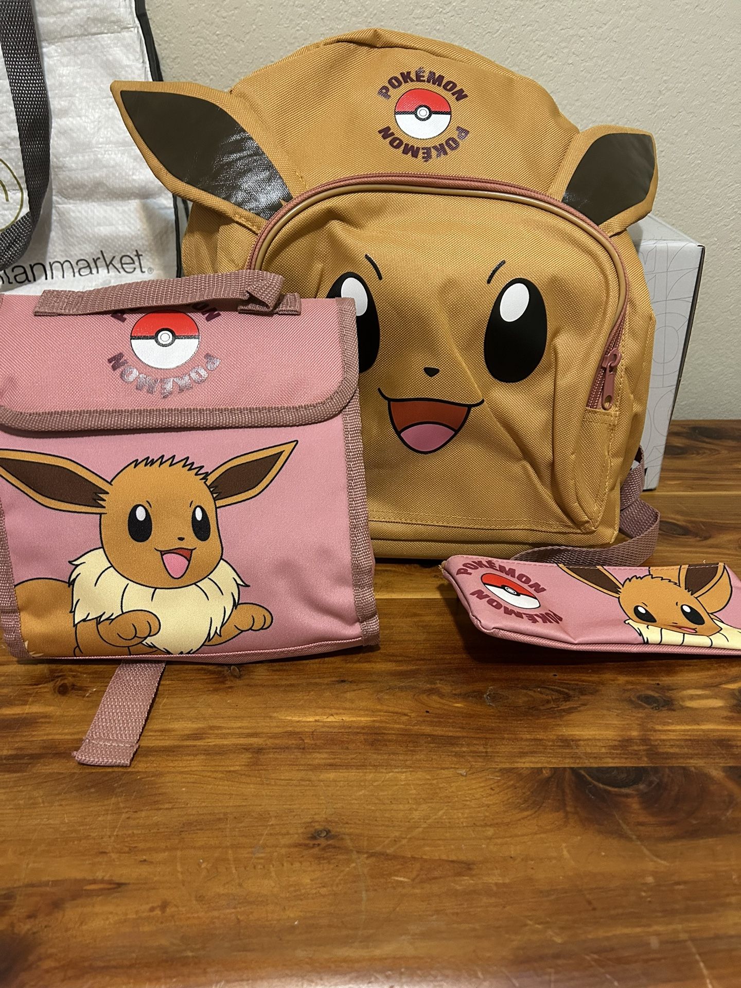 Small Evee Pokémon backpack with lunch bag and pencil pouch. Brand new never used