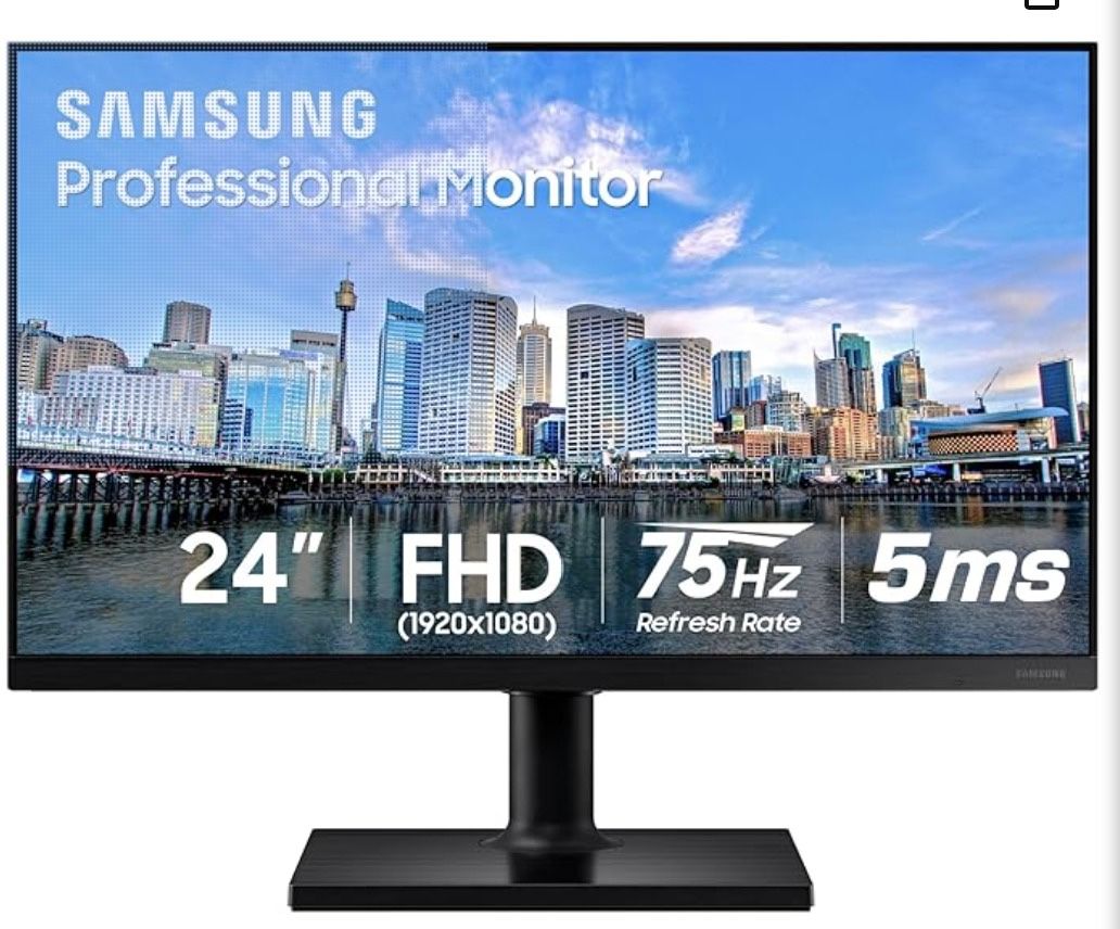Samsung 24” FT45 Series FHD 1080p Computer Monitor, 75Hz, IPS Panel, HDMI, DisplayPort, USB Hub, Ultra Thin Bezels, Ergonomic Design, Height Adjust