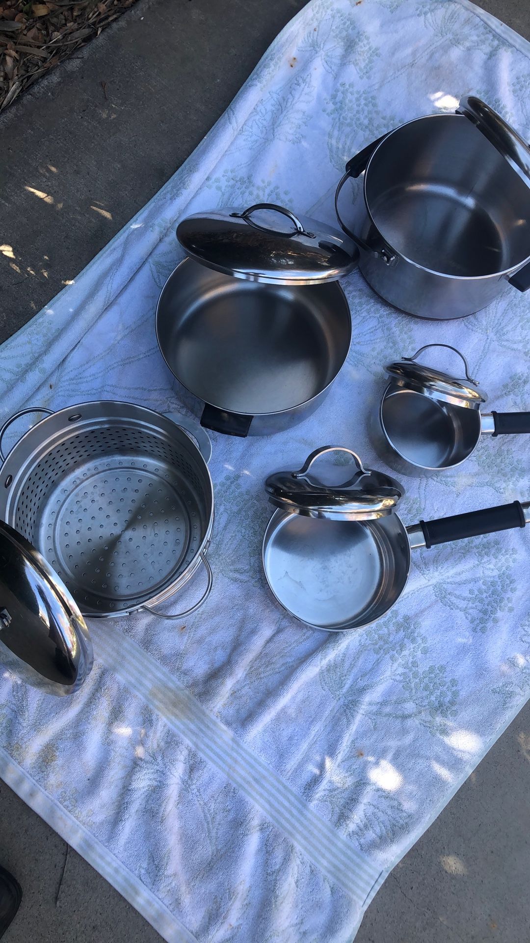 1 quart to 6 quart polished stainless steel with aluminum core for even heat. The best of the best π $45 takes all. Like new