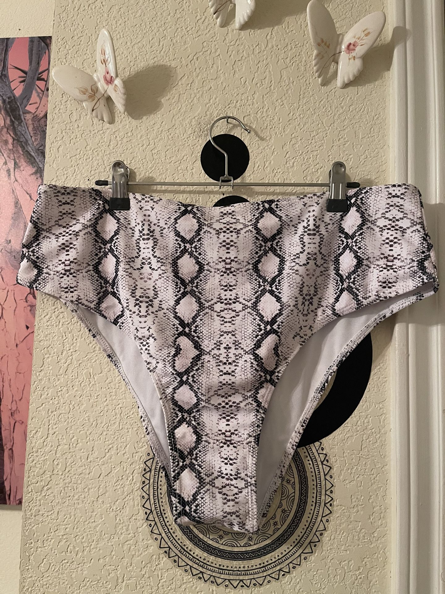 Stylish snake print bikini bottom. Features a black and white pattern. NEW Size 2X Beachy Polyester Great for spring/summee NEW