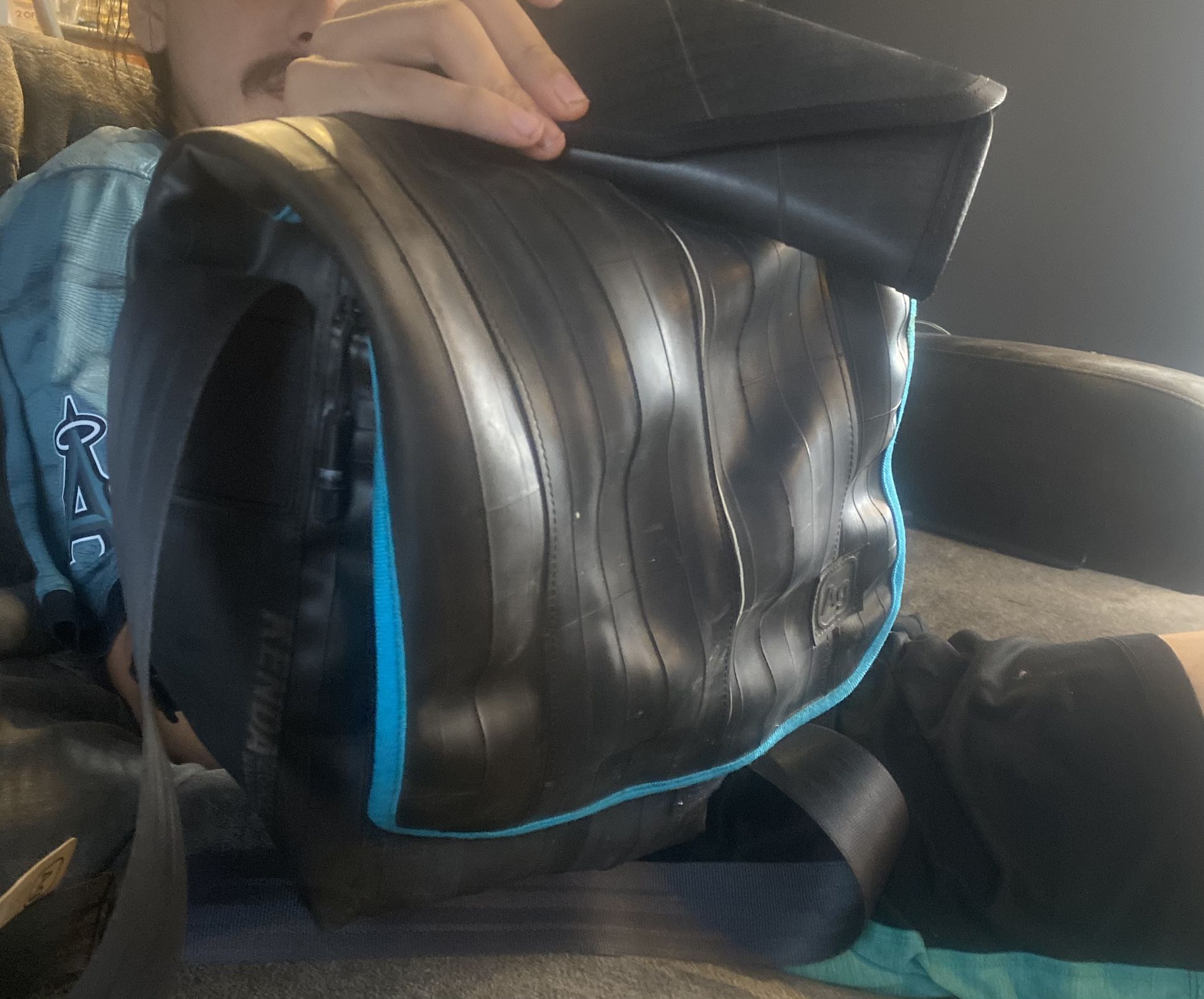 Alchemy goods messenger bag w/ wallet made out of recycled bicycle inner tubes EUC 80.00 cash Contact me when you are ready to meet Meeting at Starbucks 6th and sprague in tacoma