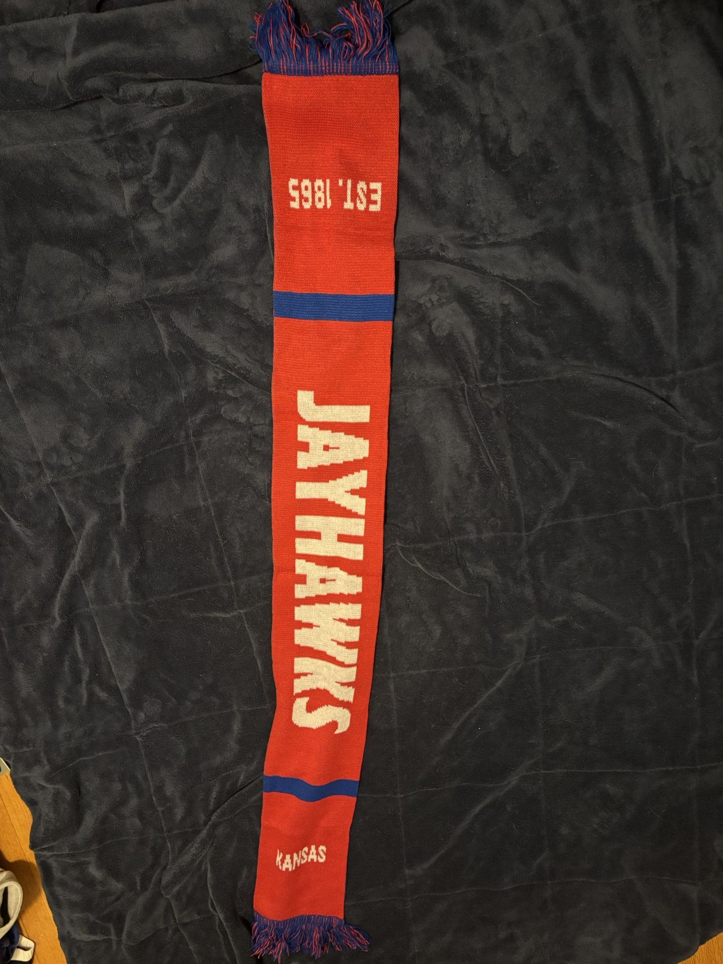 Kansas Jayhawks Rock Chalk Scarf for sale. In excellent condition, can be worn or would be good wall decoration. Local pickup and shipping available. Feel free to send me offers. Thank you for looking and let me know if you have any questions.