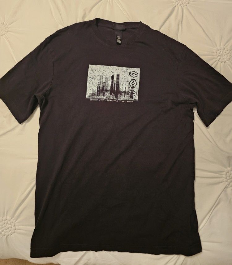 H&M Men’s Black Graphic T-Shirt – Cityscape / NYC Tokyo Print – Size M Relaxed Fit