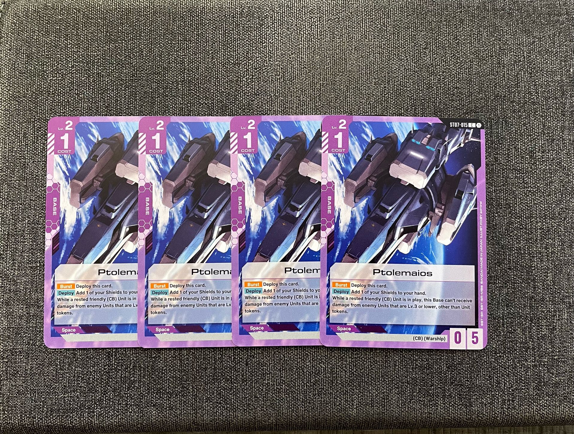 (Set of 4) Ptolemaios Base Card ST07-015 C, from Gundam TCG Starter Deck ST07, Celestial Drive. Near mint or better, brand new. Available for pickup in Chesterfield.