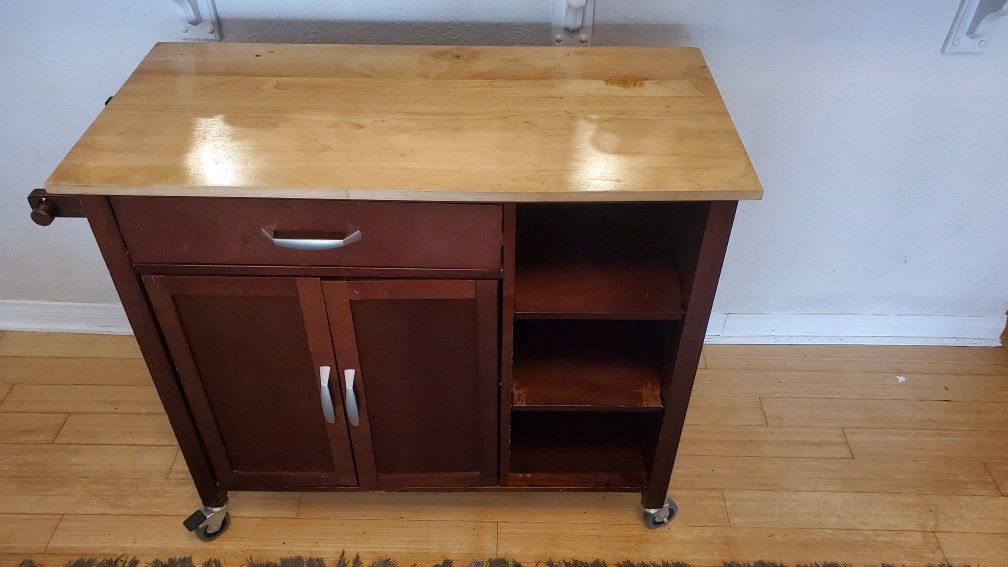 Mobile standalone Wood Kitchen Bar Cabinet With wheels and storage