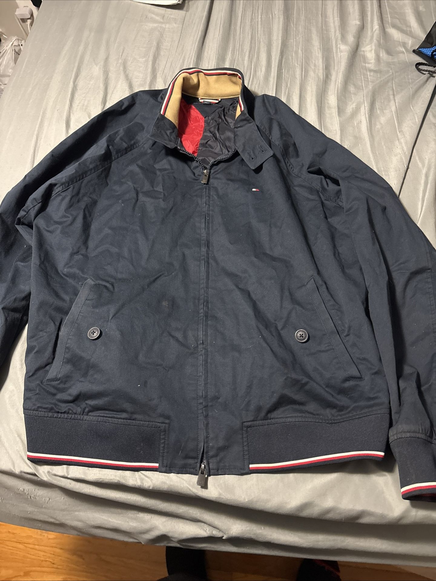Tommy Hilfiger Jacket Mens XXL Navy Red White Reversible Colorblock Full Zip