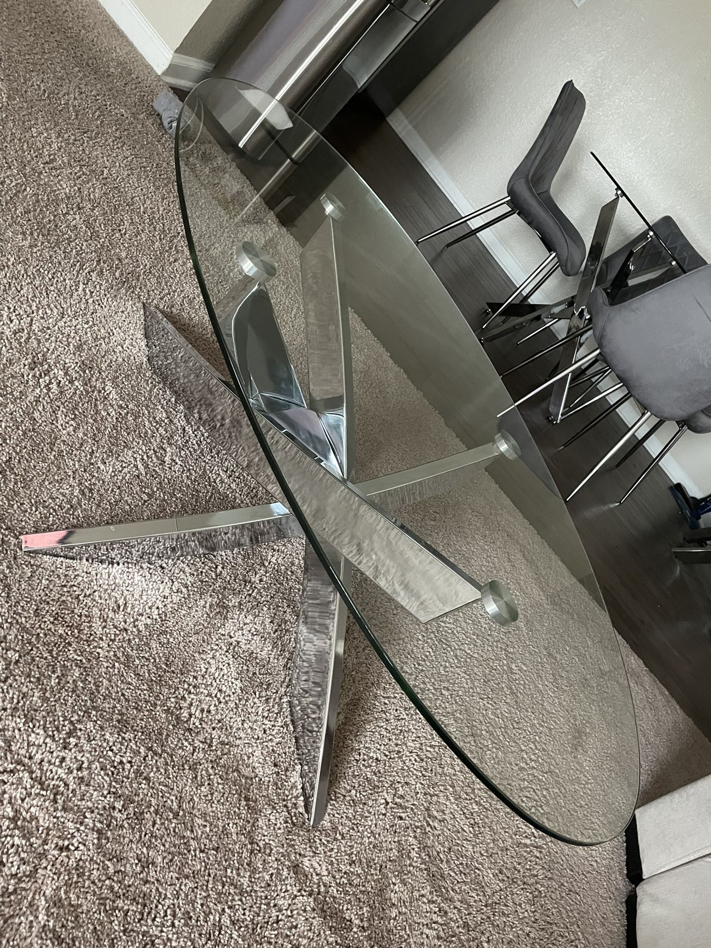 Nice round glass coffee table with chrome legs 2 months old I'm moving don't got room for it