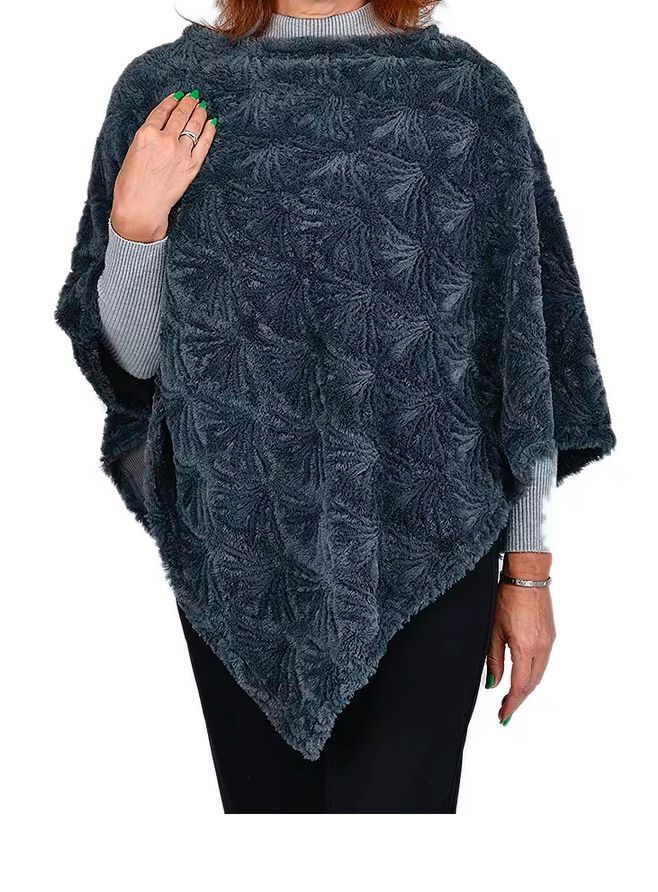 Passage Gray Floral Pattern Faux Fur Poncho NWT