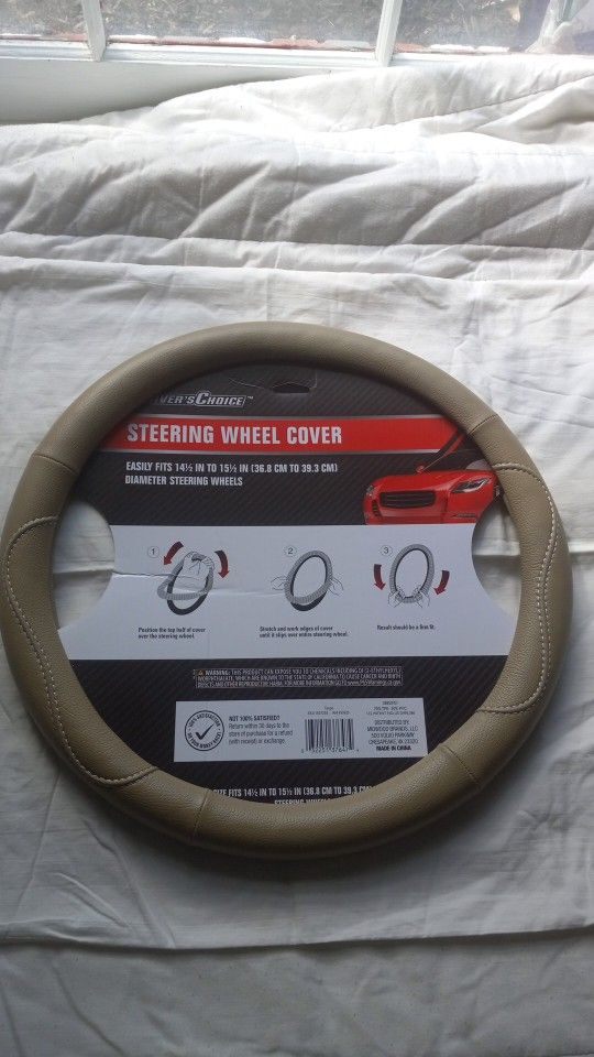 The color beige steering wheel cover 14 and a half into 15 and a half inches brand new