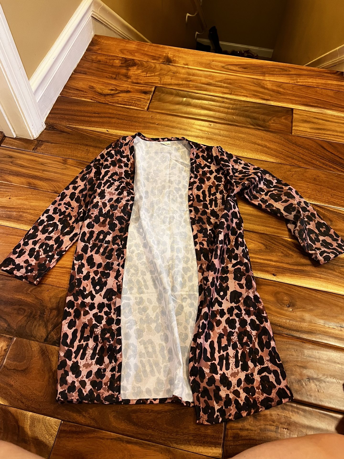 Girl’s long sleeve cheetah leopard kimono. Fits like a 7/8