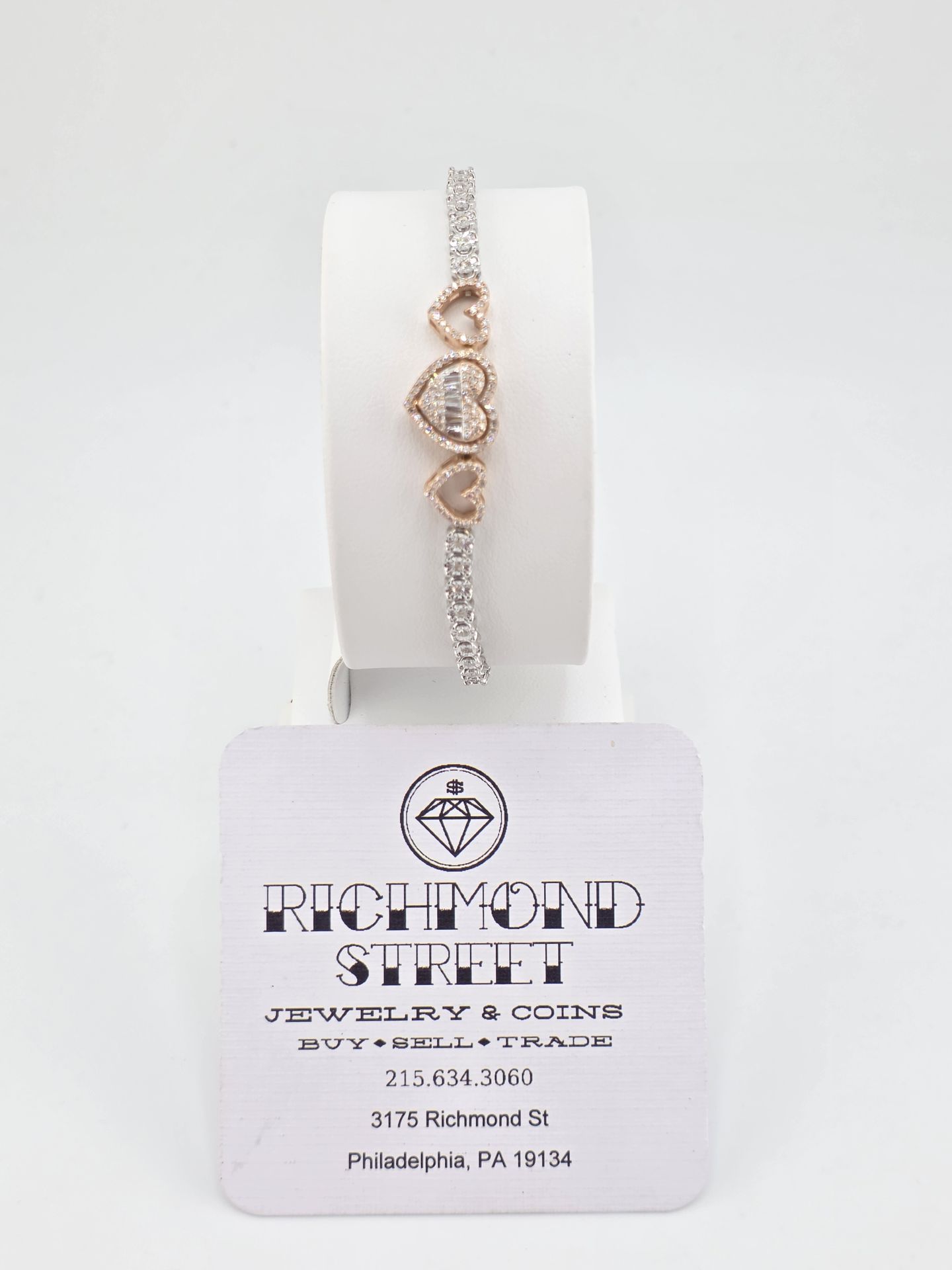 10k rose and white gold 7" diamond heart tennis bracelet