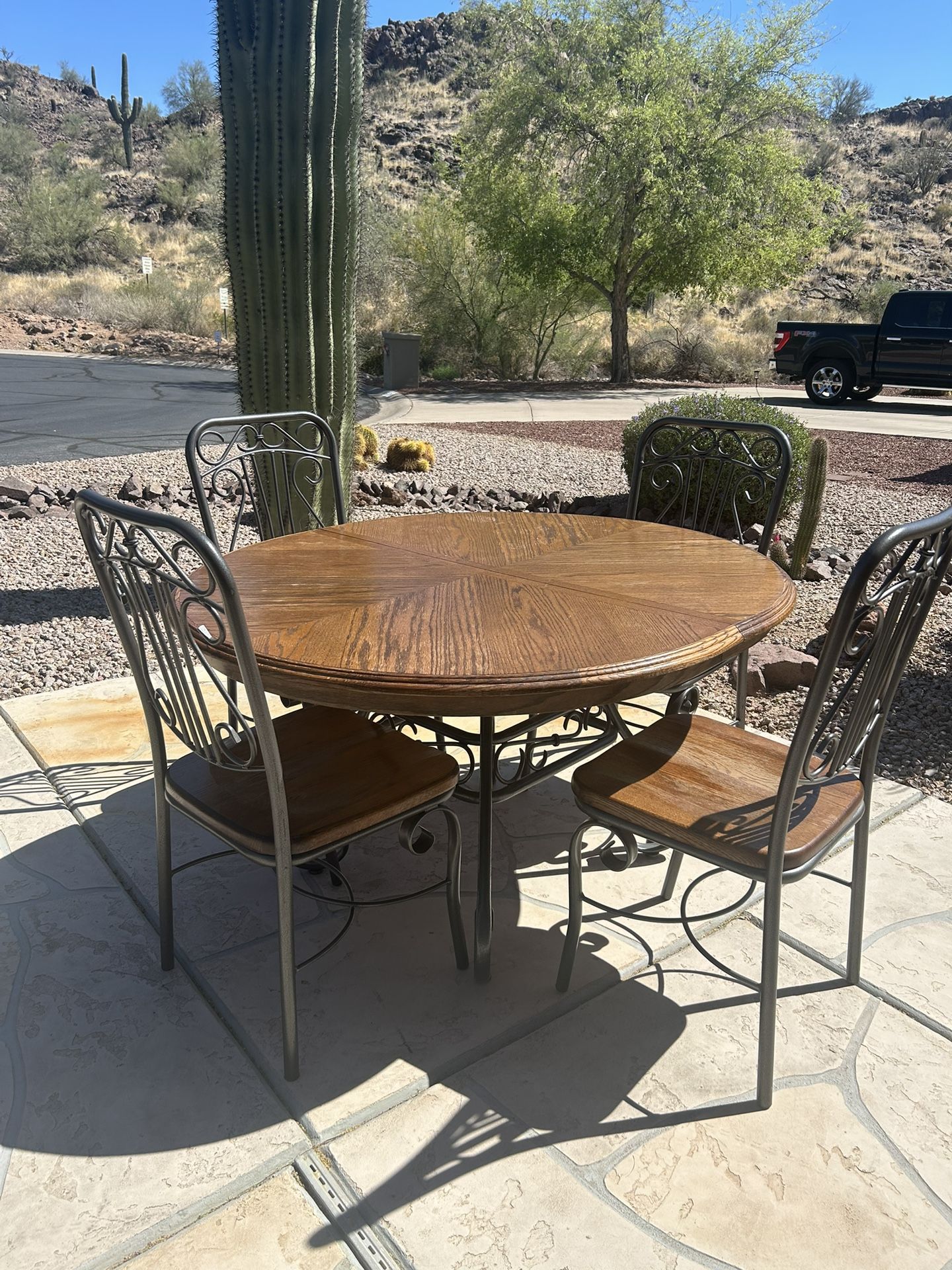 Nice, solid wood kitchen table with 4 metal and wood chairs. Smoke free, pet free home