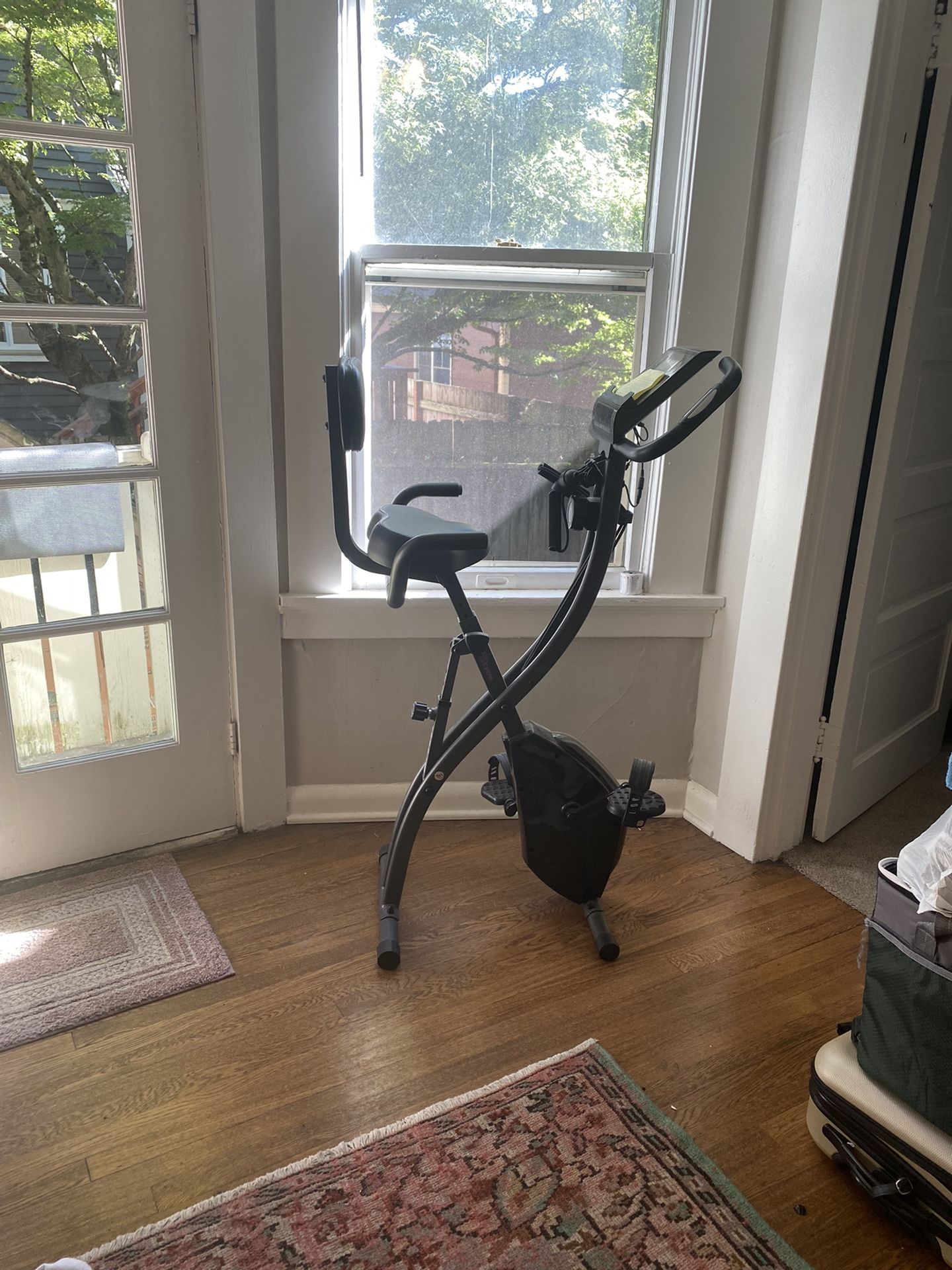 Stationary bike in excellent condition. Bought it this summer, used maybe 20 times and I loved it, but we’re unexpectedly needing to move to Florida & have to sell everything! Will post more items throughout the week. Price OBO Some of the reviews say it's only for short people, but fr I'm 5'10" and i think it’s perfect & it’s easily adjustable! &&& I didn't even use the highest setting. Folds up & has wheels so easily portable & it doesn't take up as much space when not in use, and feels really sturdy when you're on it. It shows no signs of wear. The amazon link is the exact item. https://offerup.co/faYXKzQFnY?$deeplink_path=/redirect/