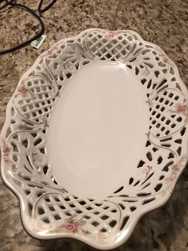 Beautiful candy Dish from Oscar de la Renta fine China made in Germany no chips or cracks Very neat measures 12” long x 81/2” wide x3” deep