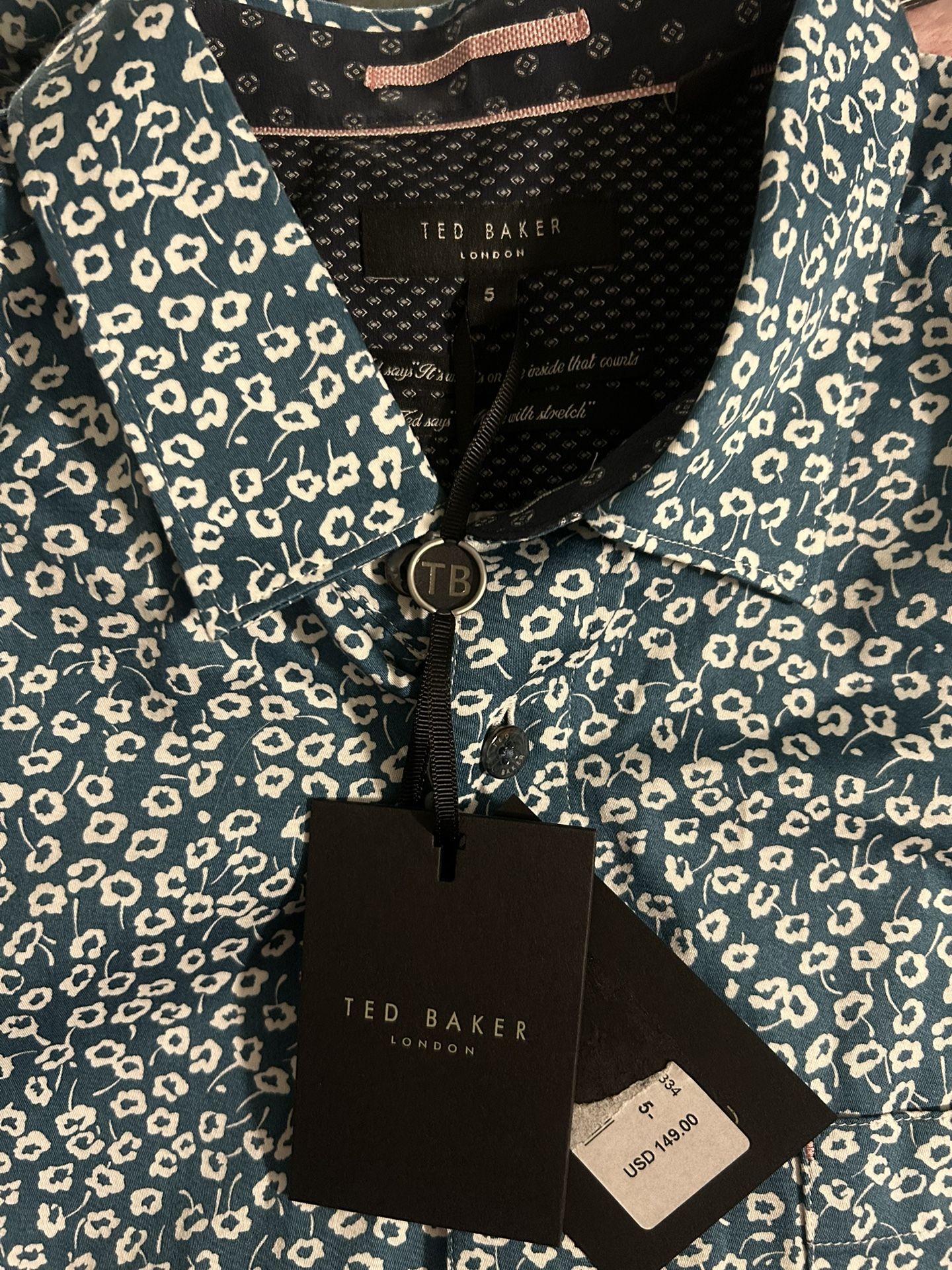 New Men Dress Shirt / Ted Baker 97% Cotton 3% Elastane Color Teal Size Medium (adult) With Tag $20 Firm