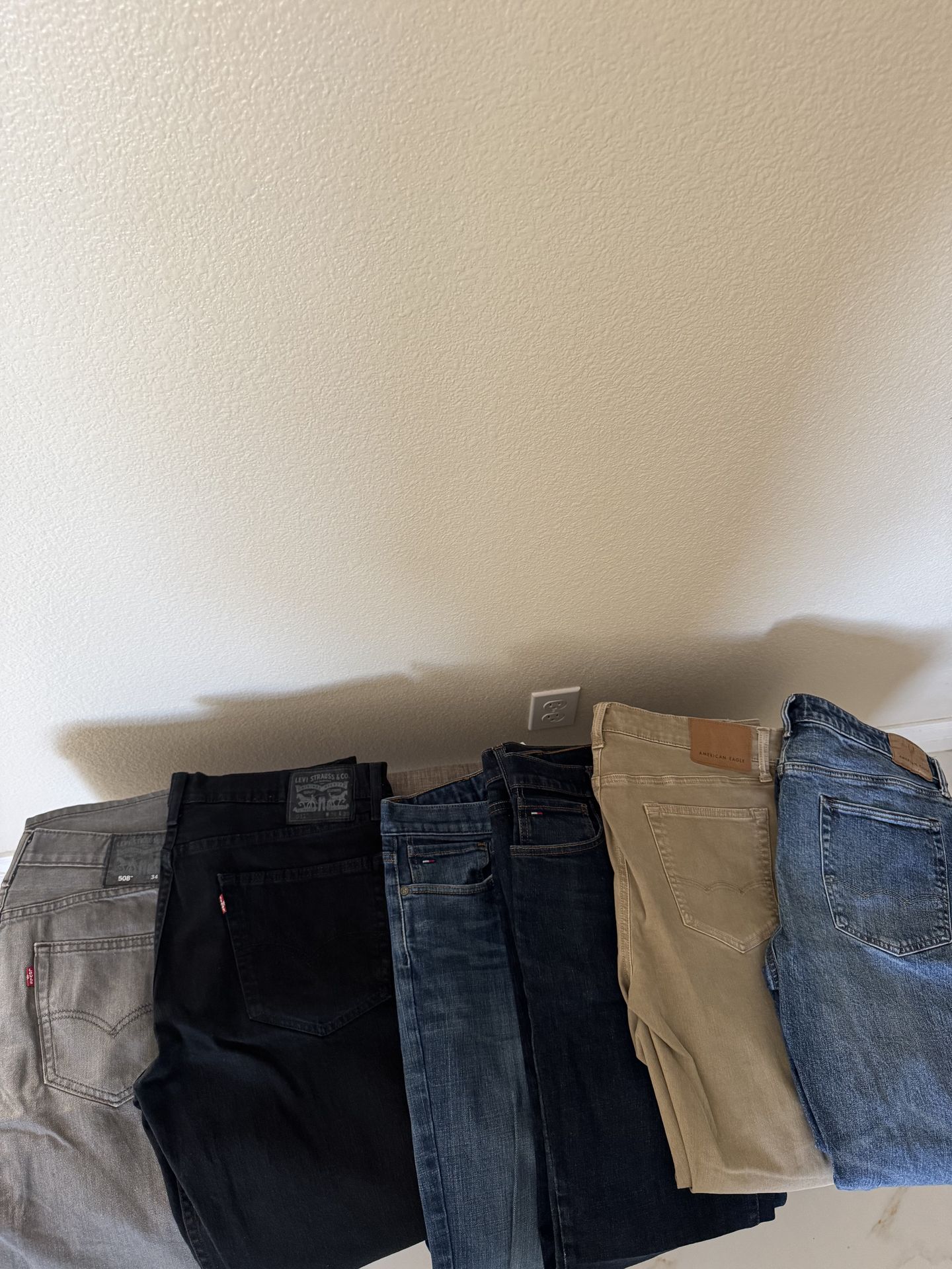 American eagle,Levi’s and Tommy Hilfiger $8 dollars each. Size 34x30. I have 6 jeans
