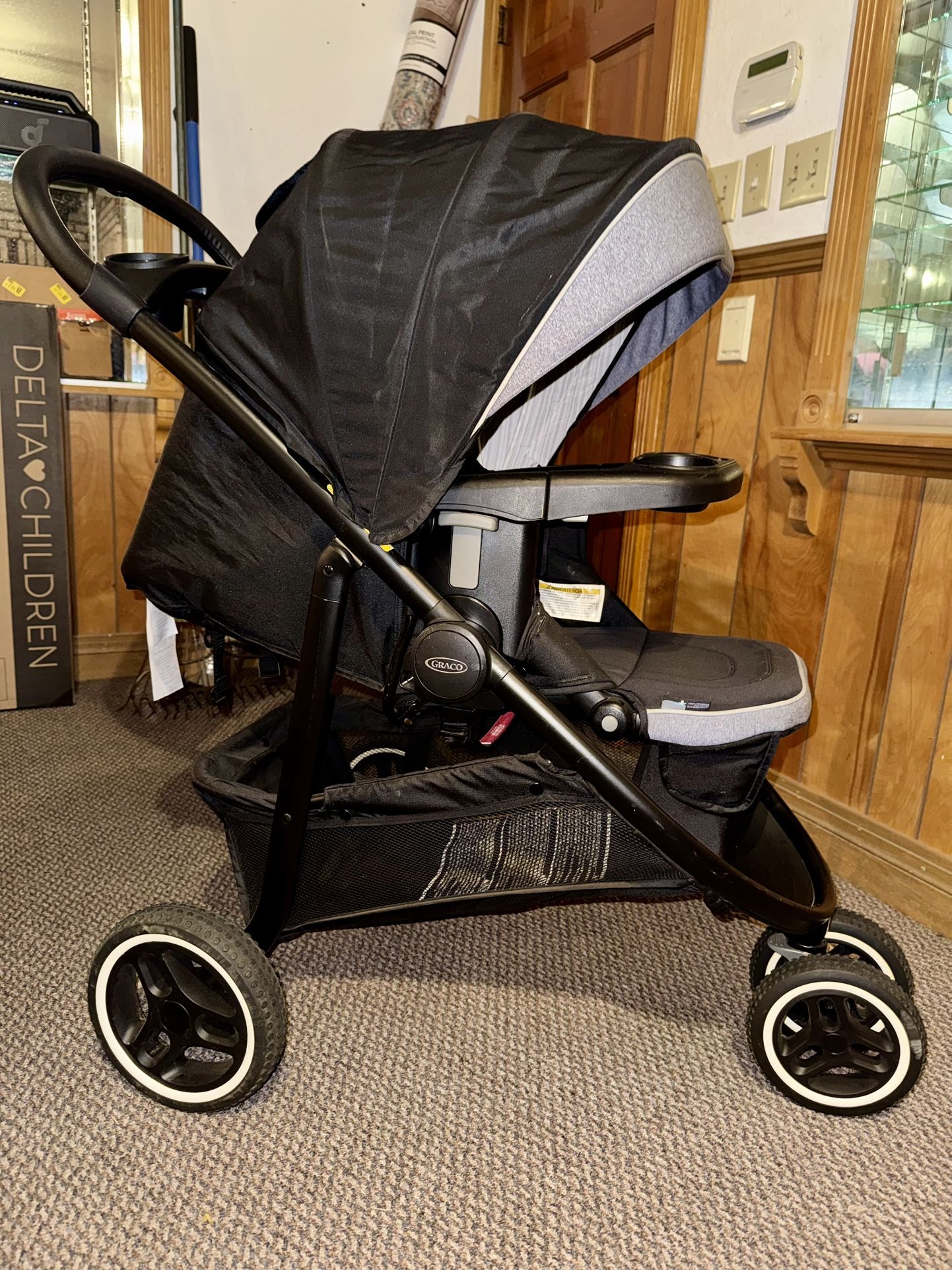 Excellent condition, just purchased for when my Godson came to visit, but I usually carried him lol *Any Graco infant car seat will fit this stroller. * Never flat all terrain tires. Steers amazing, is not wobbly *No stains Pick up in Waterford/Hickman area • Polyester • Imported • 3 strollers in 1: Infant Car Seat Carrier, Infant Stroller, and Toddler Stroller to stroll from infant to toddler • Click Connect technology provides a one-step, secure attachment of infant car seat to stroller • Reclining seat converts to an infant stroller in both rear-facing and forward-facing modes • Reversible stroller seat can face parent or the world, for just the right ride as baby grows • Adjustable calf support grows with your child, allowing you to find the most comfortable position • One-hand fold for easy storage • Removable child's tray with cup holder to store your child's drinks and snacks as you stroll • Parent's tray with 2 cup holders and a storage compartment offers a place to store keys and drinks • Locking front swivel wheel and never-flat, all-terrain tires provide a smooth ride for baby