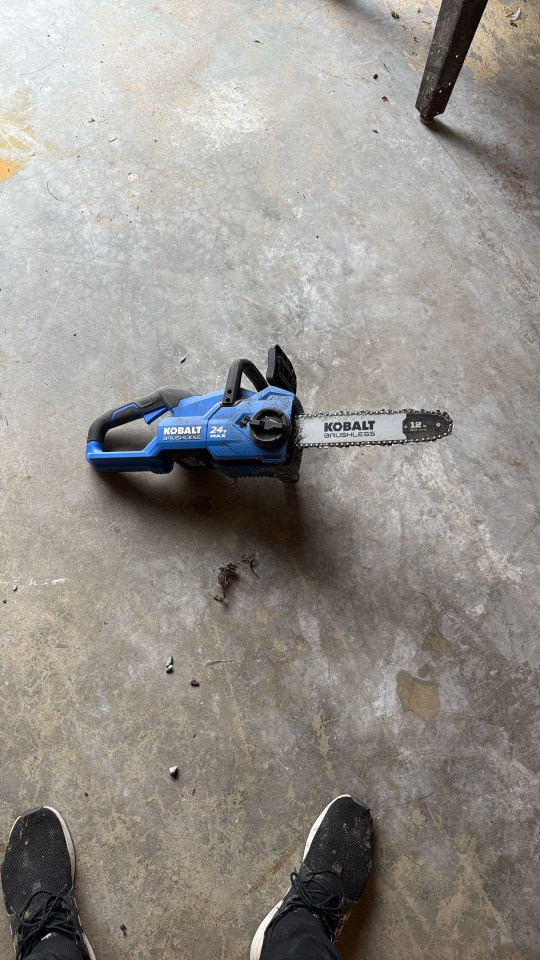 Chainsaw with battery no charger though, works fine the chain needs sharpening only issue