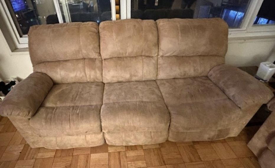 Complete 6-piece sectional sofa set in Tulen fabric, tan/taupe color. Perfect for a large living room! What's Included: • 1 single recliner chair • 2 seater recliner 3 seater recliner (middle part doesn't recline just the sides) Condition: Please note this sofa will need some cleaning. Price: $450 (or best offer) (Only zelle or venmo) No cheque Pickup: Must pick up from 150 Font Blvd, San Francisco before December 30th, or ASAP. Buyer responsible for transport - this is a large sectional so please bring appropriate vehicle nd help for moving.
