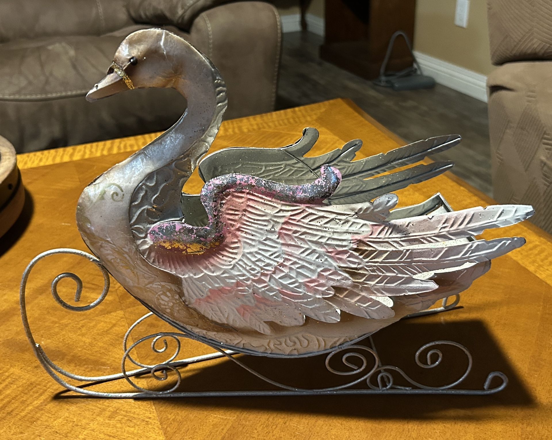 Metal Glittered Swan Centerpiece