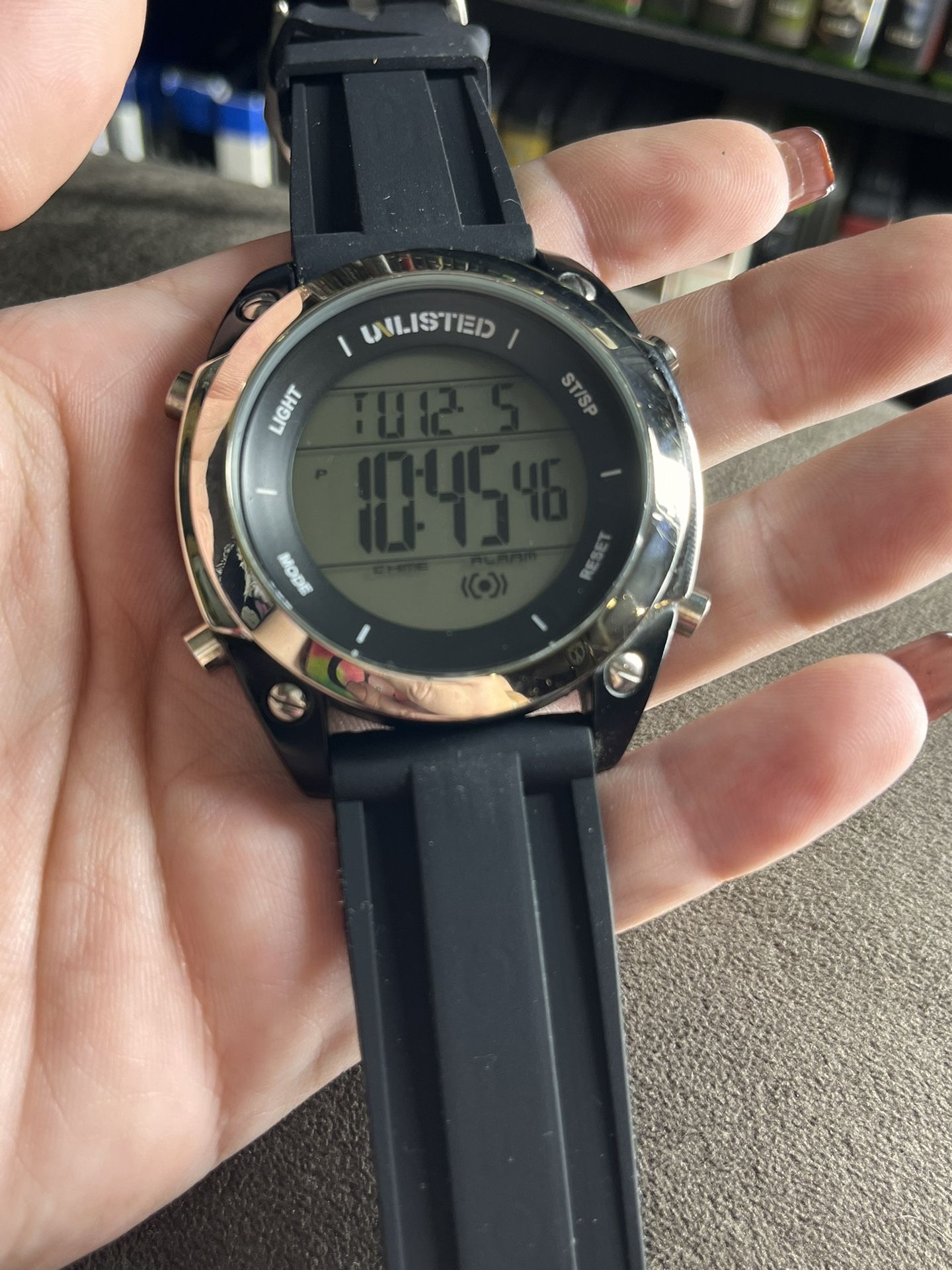 This digital watch is a tank. Big sized. New silicone strap. New battery. Like new condition.