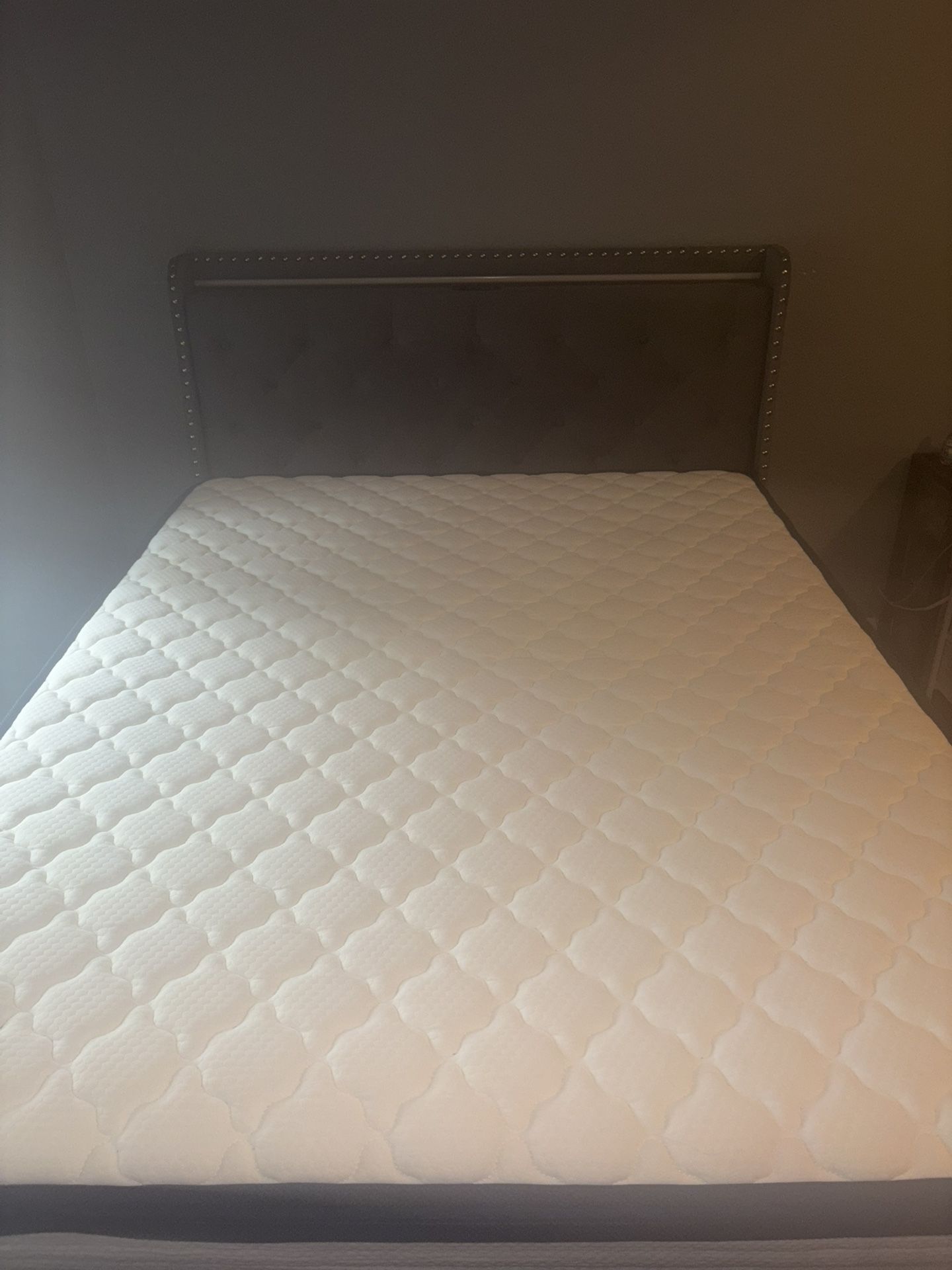Queen bed frame and mattress for sale. Bed frame does have LED lights, storage, and power outlets. Lightly used. Must pick up.
