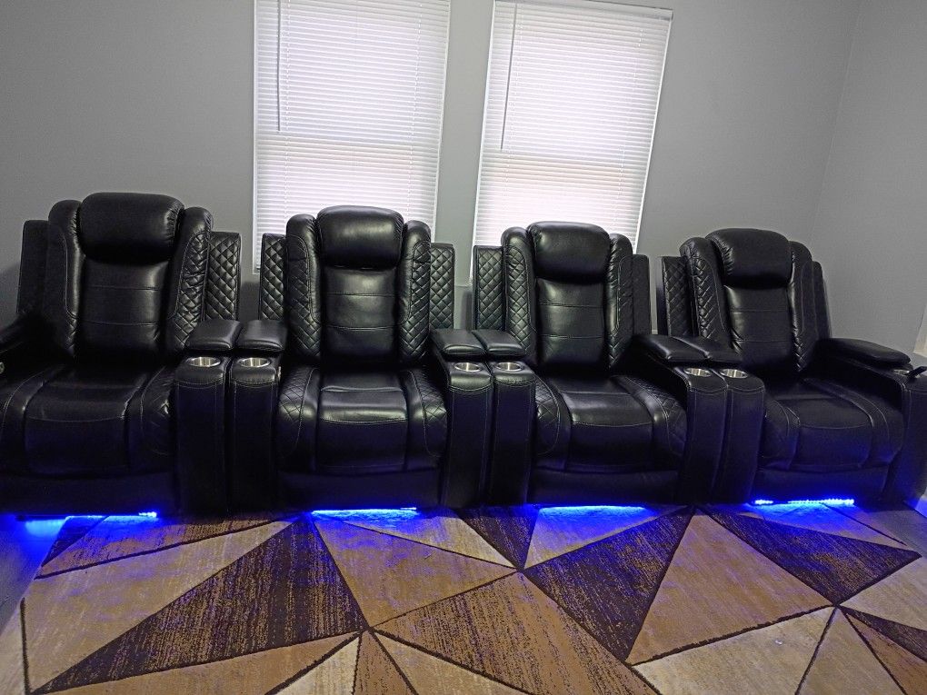 4 Power Theater Seats With Recliners and Charging Ports Also Led Lighting