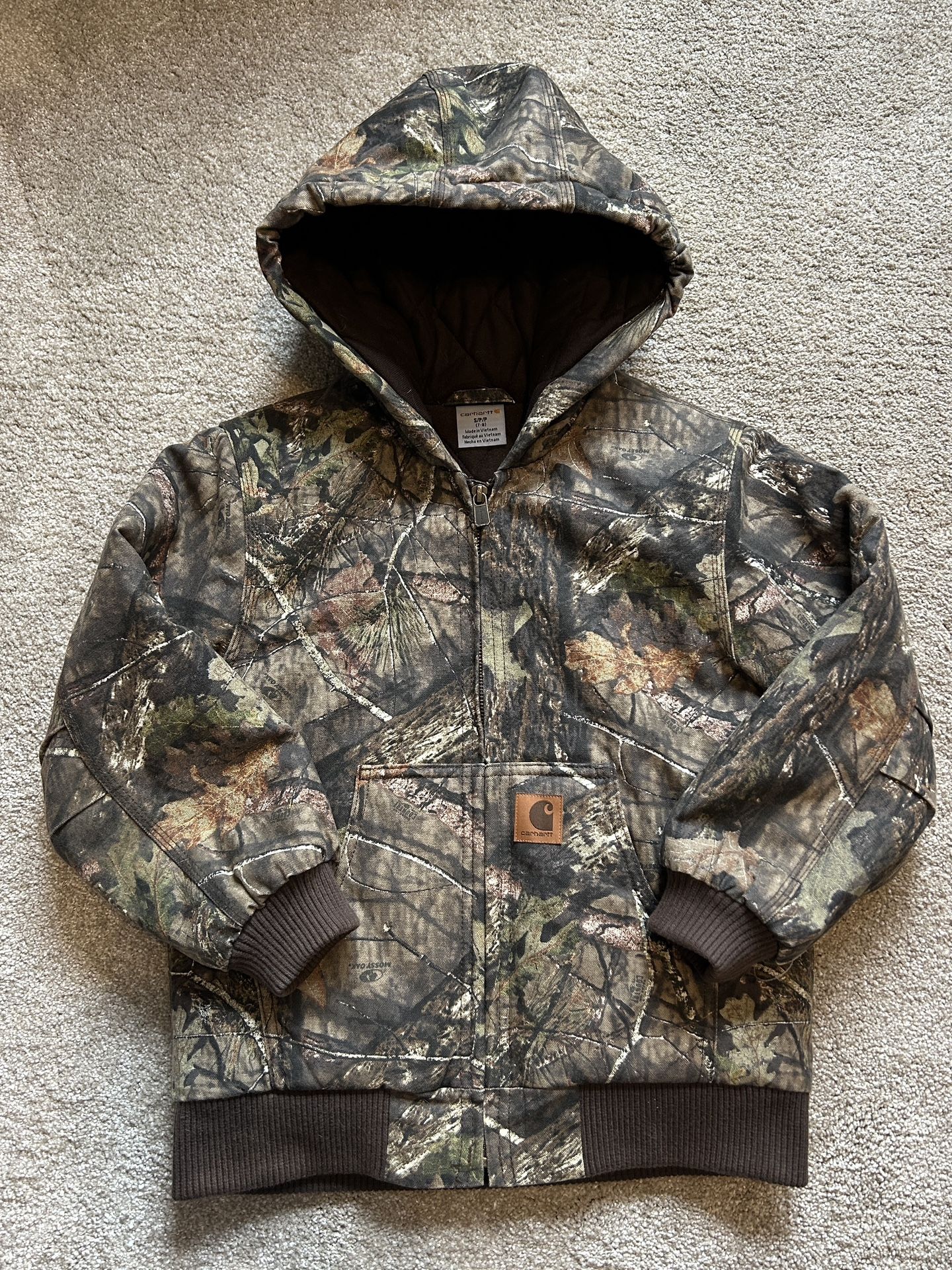 Carhartt Camouflage Quilted Canvas Jacket Real Tree Camo Hooded Insulated Youth S 7-8