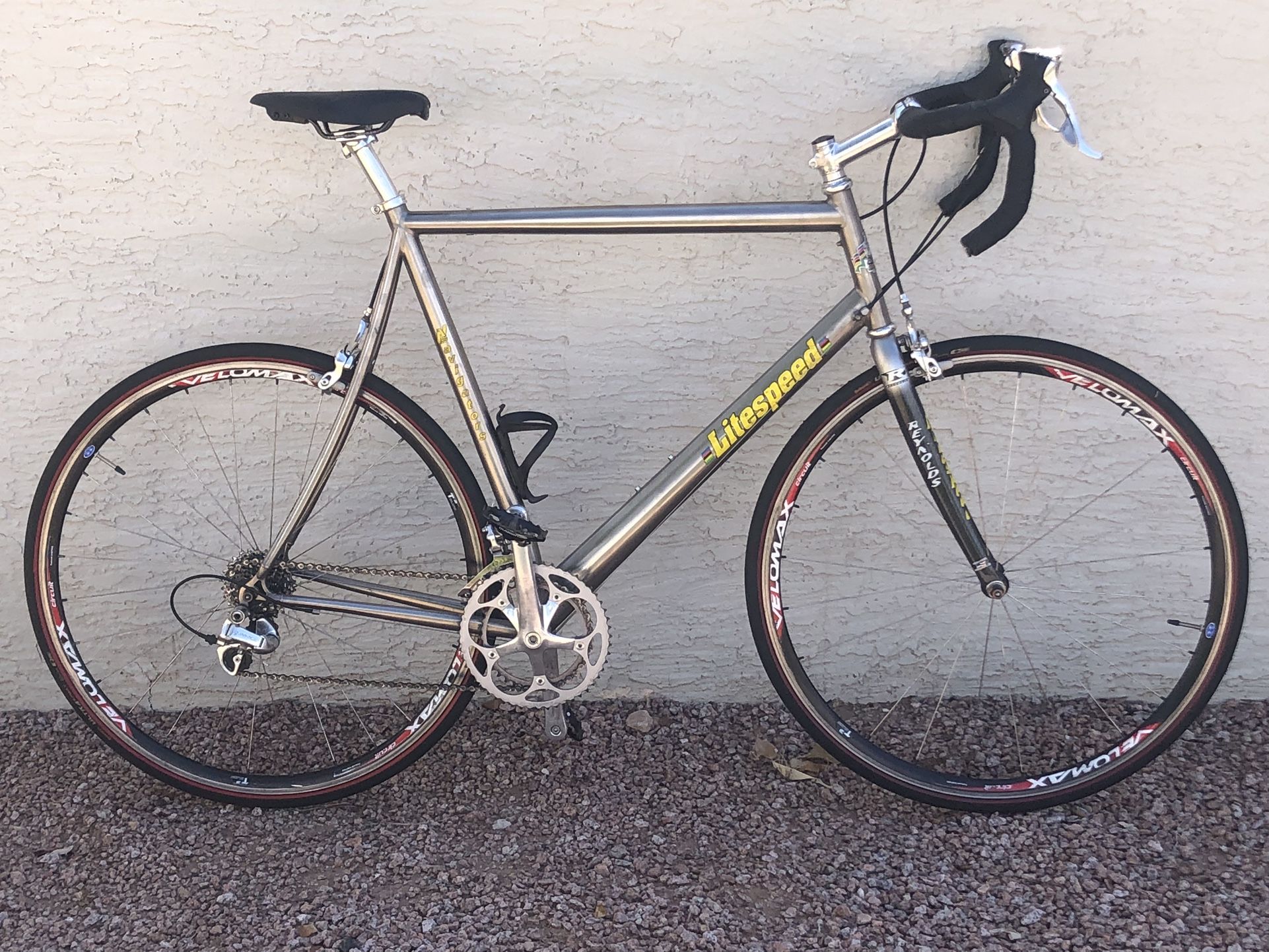 Asking $1000 or best cash offer. May be interested in trades for cash + 2A items. Early 2000s Litespeed Ultimate titanium road bike. I purchased it several years ago from a pro racer who told me that the bike originally belonged to Marty Nothstein (gold medal Olympian and Navigators team member) XL titanium frame (61cm) Shimano Dura Ace components and brifters (2x9) Ultegra brakes. Shimano dual-platform pedals Truative bars and stem Chris King headset Thompson seat post fizik noseless saddle Velomax wheels and hubs Reynolds carbon forks Available to be seen at my home. Near Val Vista and university in Mesa. If the post is up to the bike is still available.