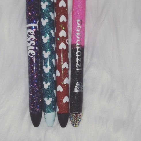 Custom ink pens. $5 with rhinestone tip is $8. They take 3 days to make